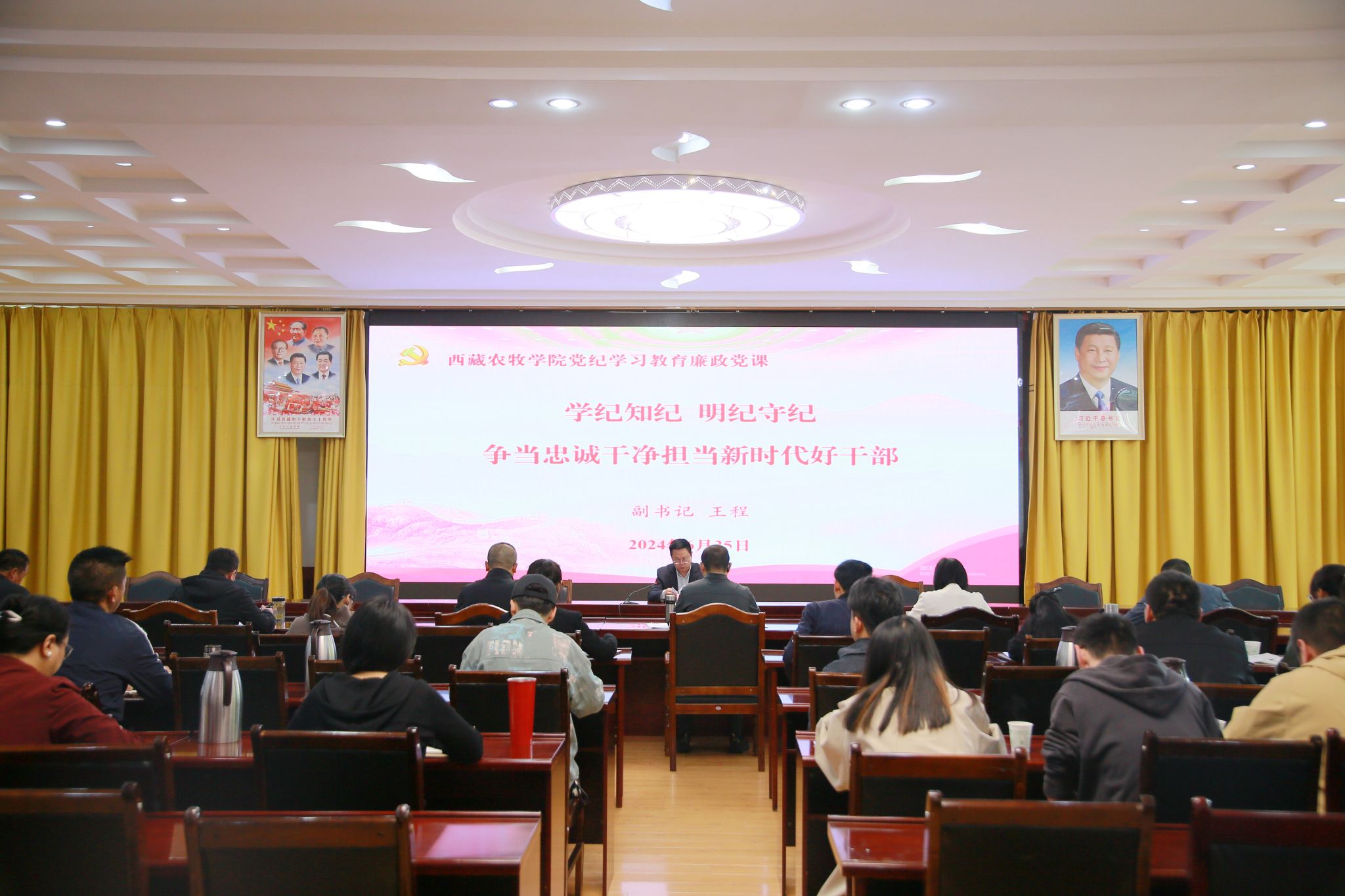 为高站位高质量开展好党纪学习教育,教育引导广大党员干部严明纪律规矩,强化政治担当,筑牢思想防线,6月25日上午,西藏农牧学院党委副书记王程以《学纪知纪 明纪守纪 争当忠诚干净担当新时代好干部》为题,为分管和联系单位全体党员讲党纪学习教育廉政党课。