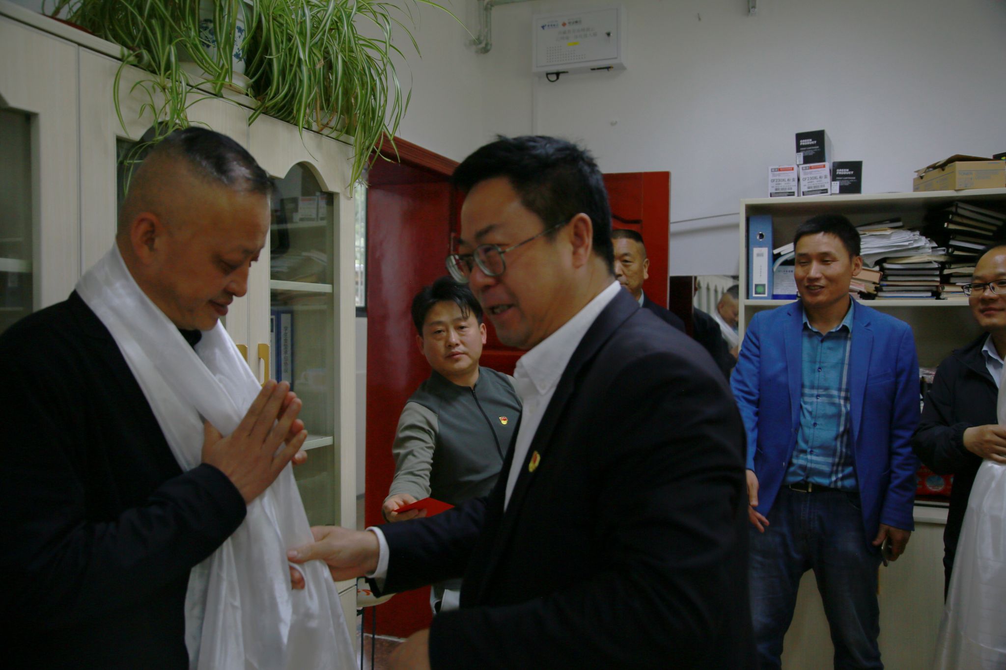 王程带队慰问了工作一线党员和老干部代表。在慰问工作一线党员时,了解他们工作生活情况和存在的困难,并勉励他们坚守岗位、无私奉献,践行初心使命,积极投身学校事业发展的火热实践中。在老党员家中,为老党员佩戴中共中央颁发的“光荣在党50年”纪念章,与老党员聊家常、话生活,关切询问身体情况和生活状况,并介绍了学校近期各方面发展情况,希望他们继续为学校高质量发展建言献策、贡献力量。