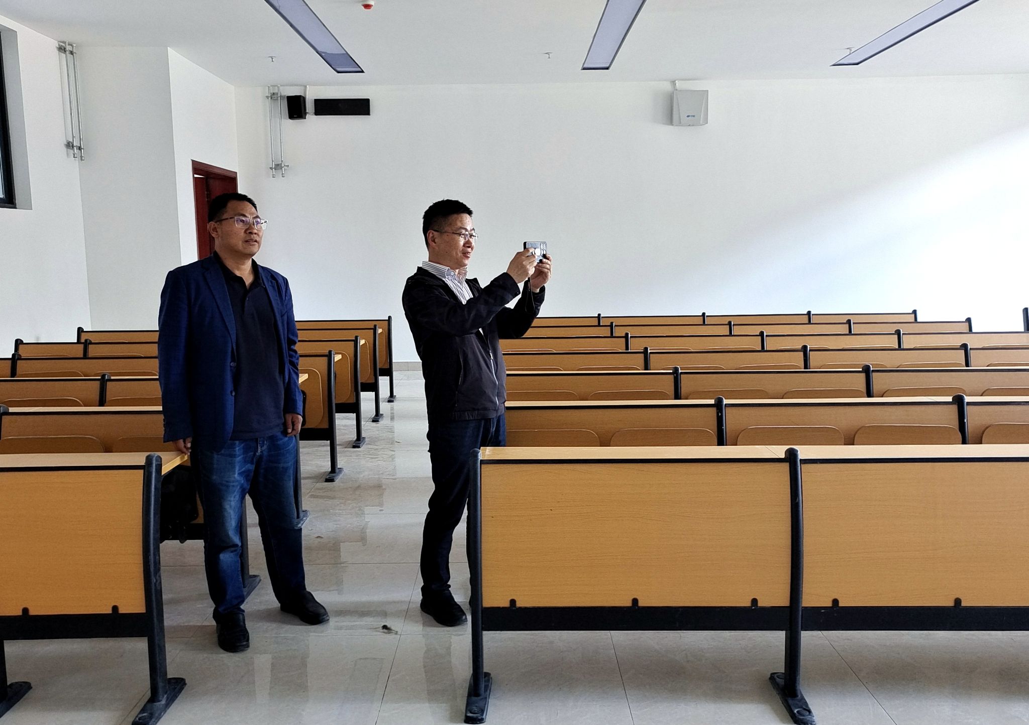 邢震现场视察了施工进度,并仔细查看了教室桌椅、多媒体设备以及教学辅助设施的安装调试情况。强调指出,新建综合教学大楼承担着新学期教学任务,各单位要坚持教学中心思想,积极协调施工方抓紧时间做好项目扫尾工作,努力确保新学期各项教学工作有序运行。