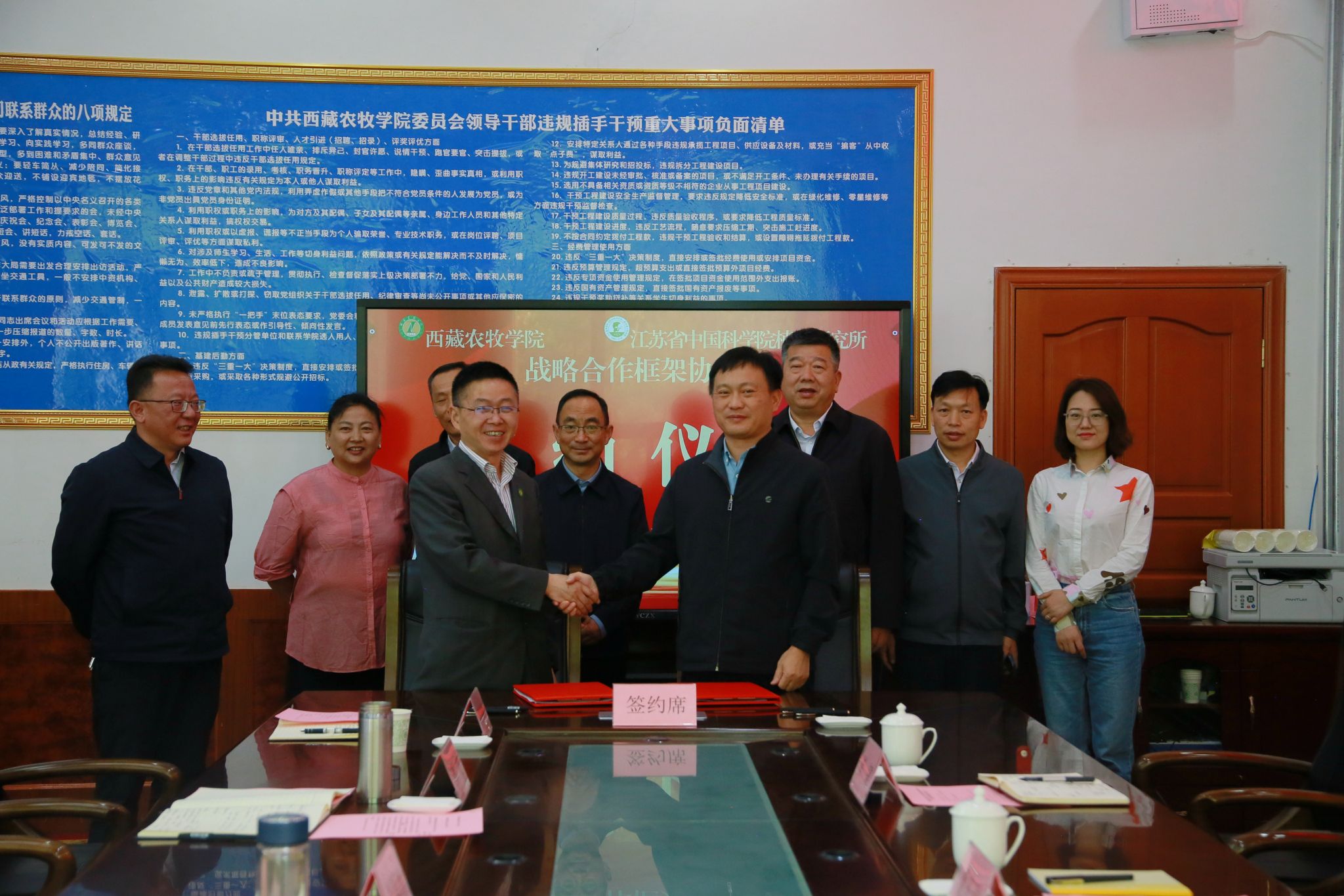 邢震、汪仁代表双方签署《西藏农牧学院 江苏省中国科学院植物研究所战略合作框架协议》。