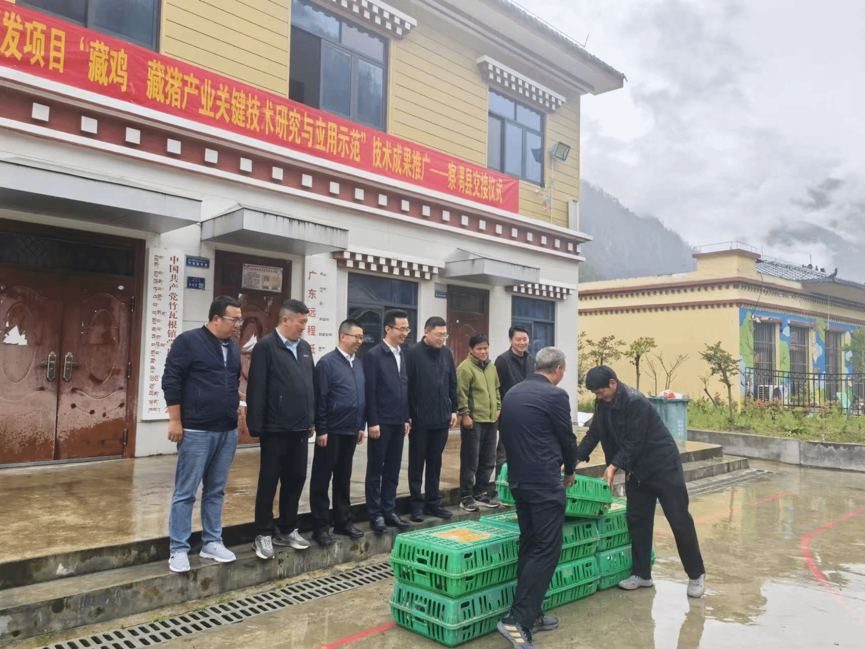 启动仪式结束后,苏大鹏带队赴察隅县携手欧博驻村工作队推广藏鸡优势杂交品种。