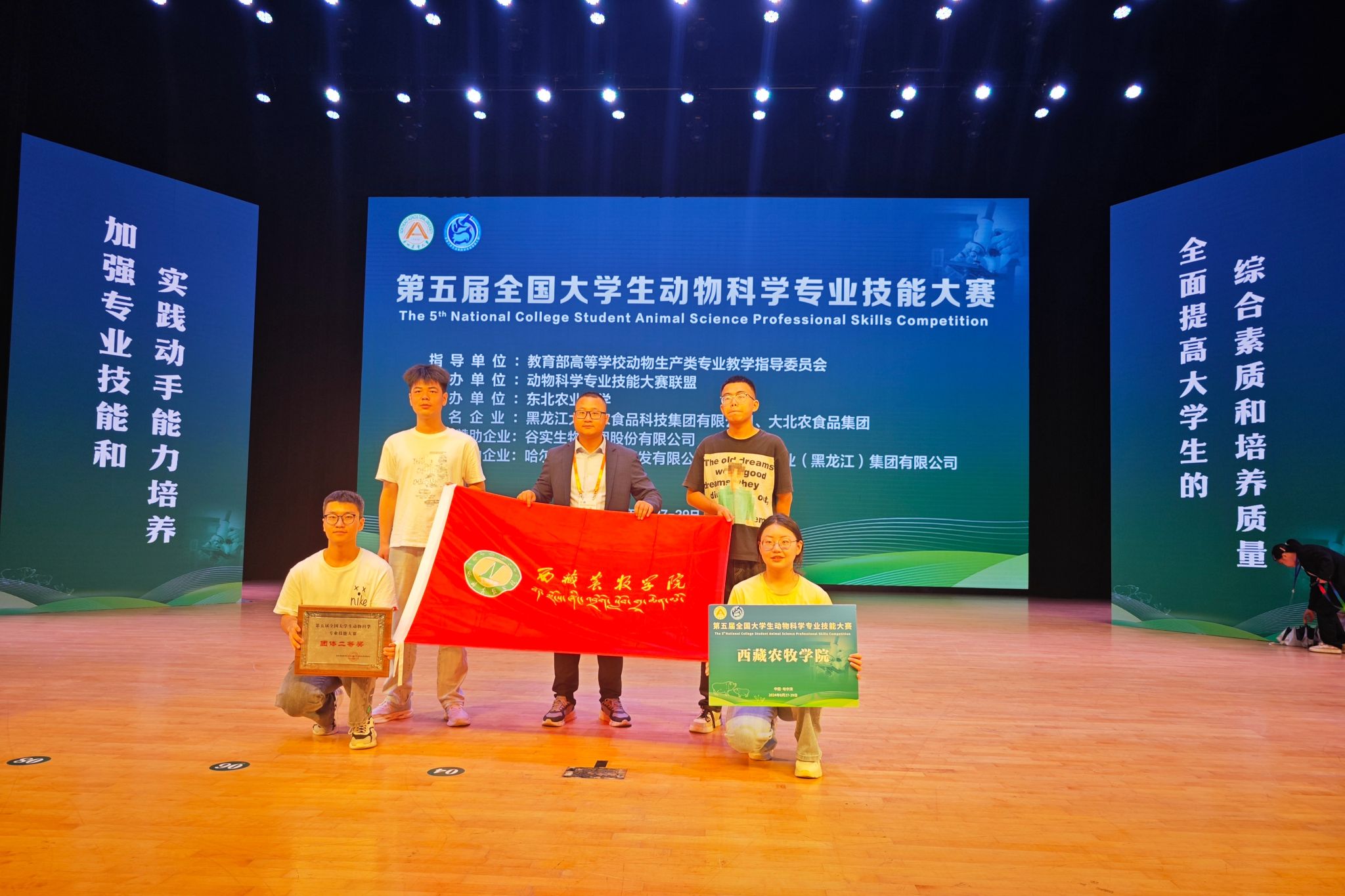 本次大赛是由教育部动物生产类专业教学指导委员会指导,动物科学专业技能大赛联盟主办,东北农业大学、动物科学类国家级实验教学示范中心承办,共设置生态畜牧场规划设计,饲料原料快速鉴定与掺假识别——掺假鱼粉的鉴定,鸡的精液采集检测及人工授精,猪的体型外貌评分及活体背膘厚与眼肌面积测定等4个比赛项目。经过紧张激烈地角逐,西藏农牧学院代表队依靠扎实的专业理论和娴熟的实践操作,荣获大赛“团体二等奖”。
