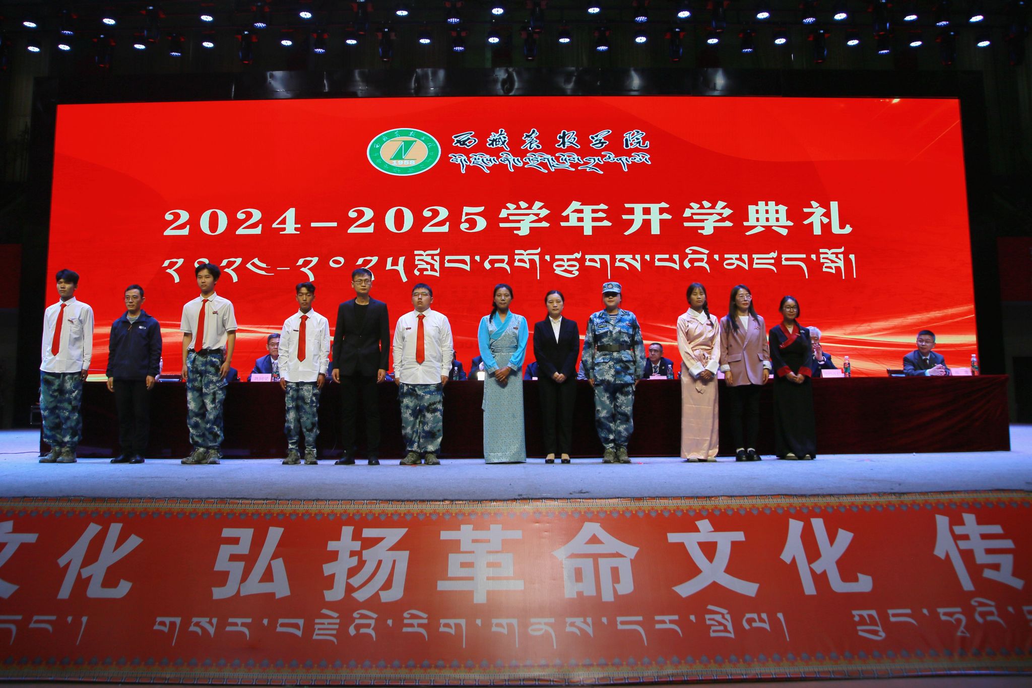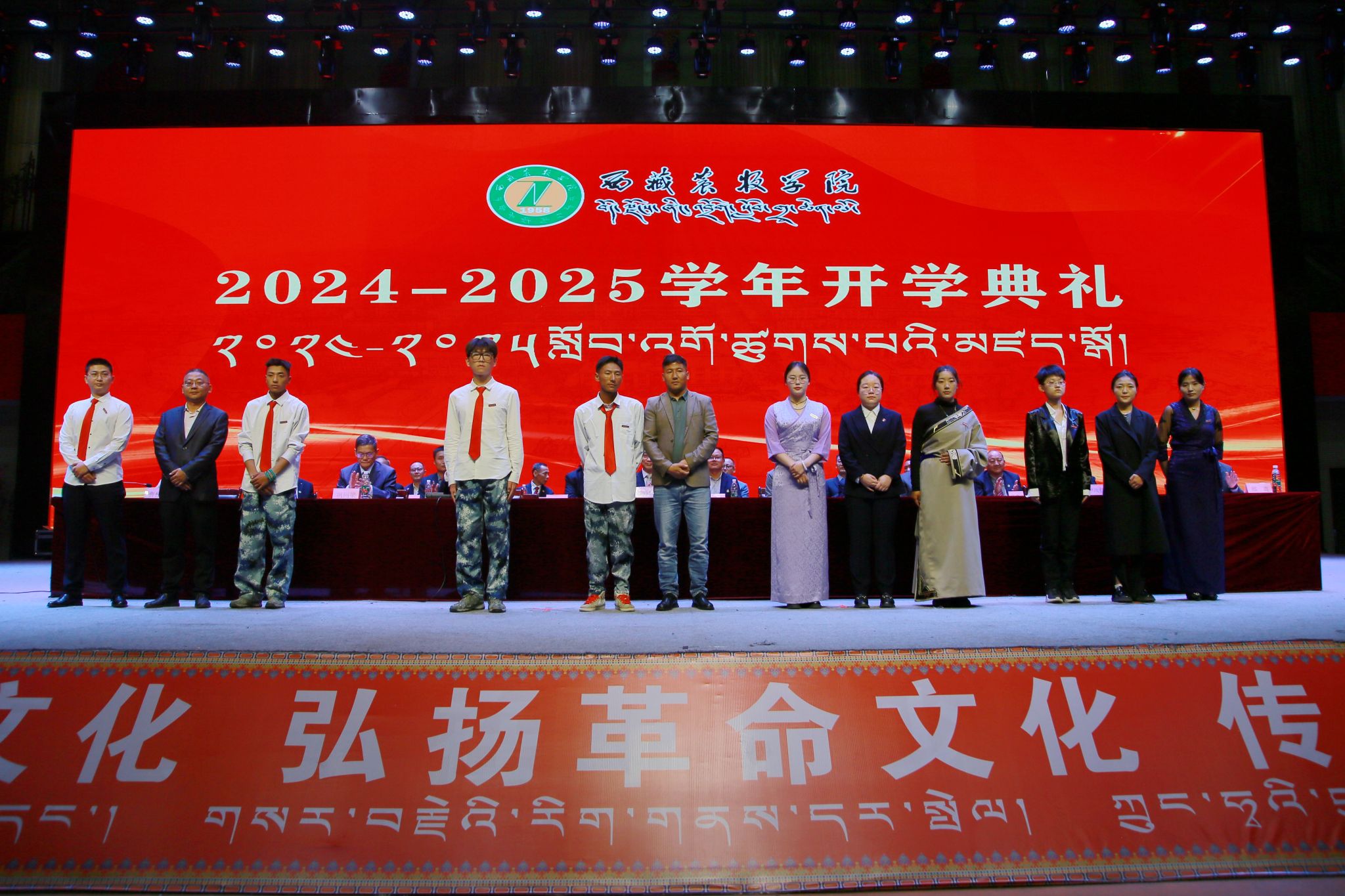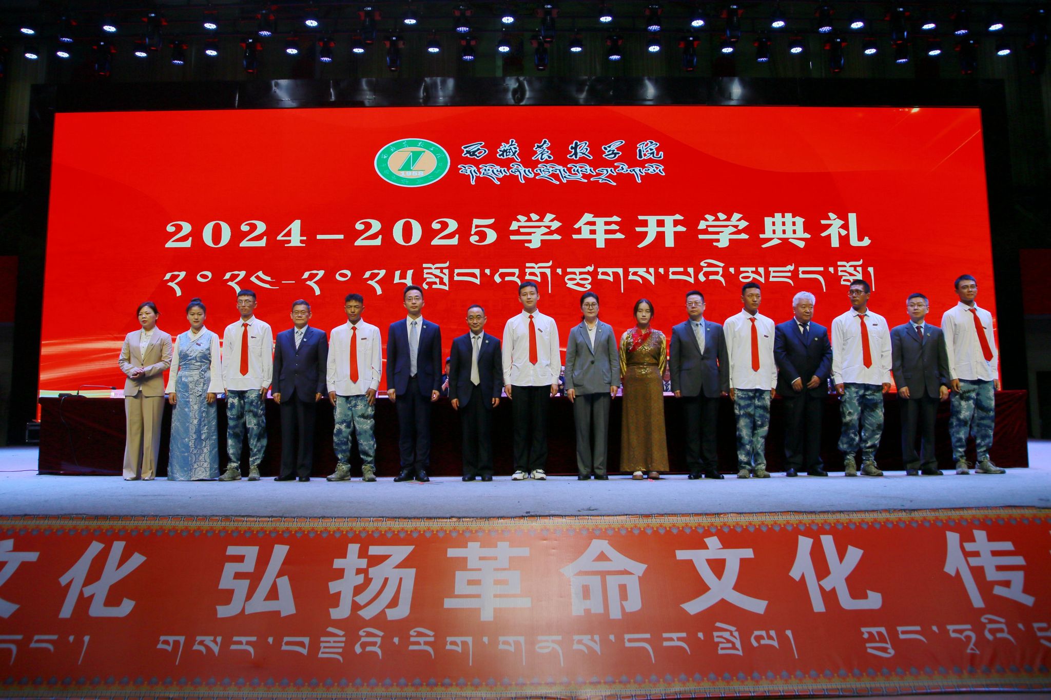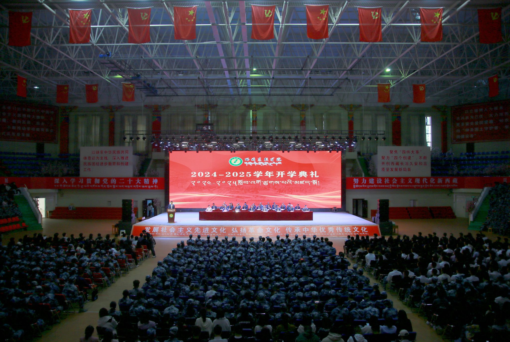 开学典礼由校党委副书记、副校长苏大鹏主持。学校领导王程、巩同梁、边巴次仁、曹仲华、邢震,各部门主要负责同志、师生代表,2500余名2024级新生参加活动。