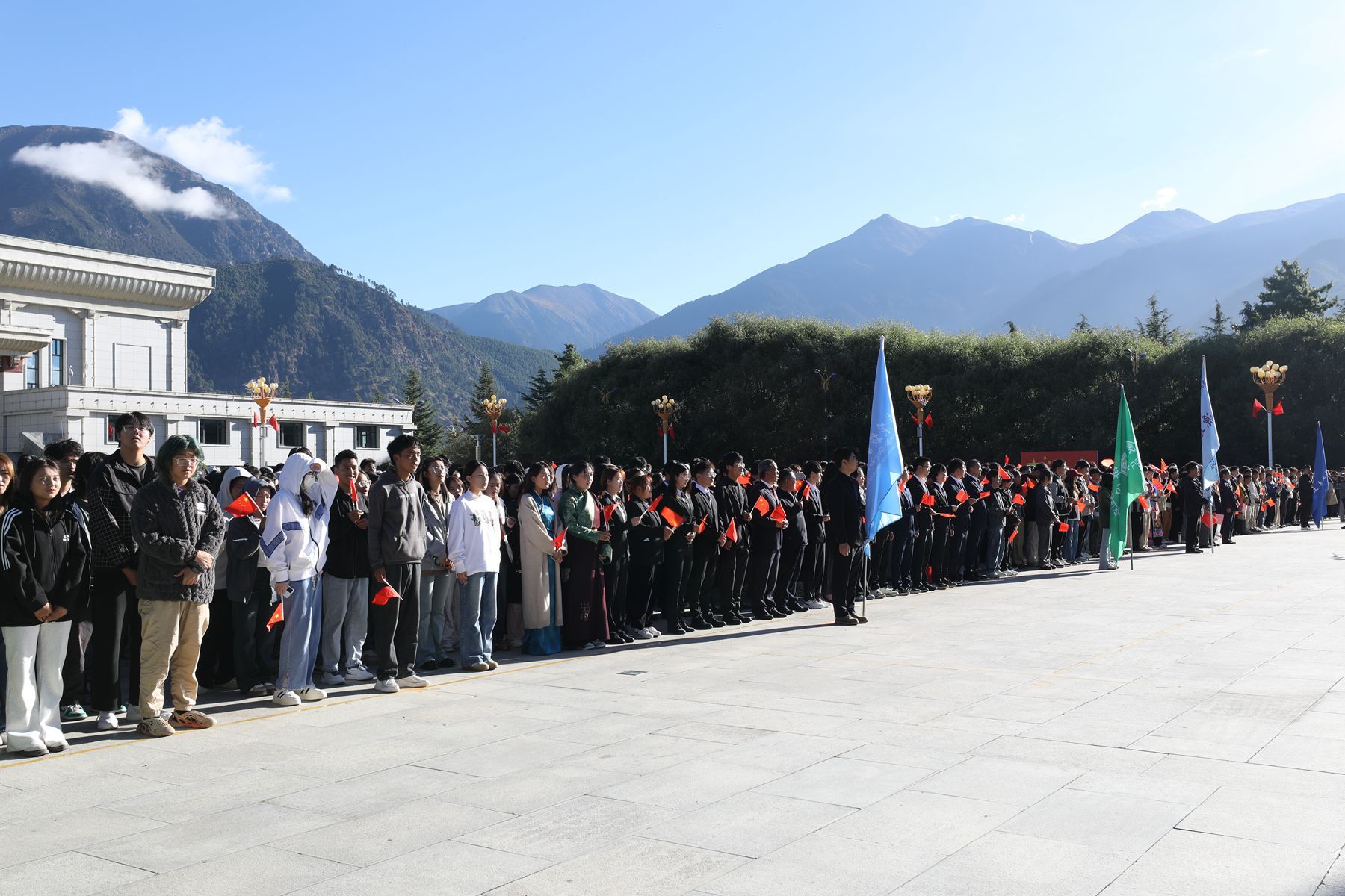 为热烈庆祝中华人民共和国成立75周年,致敬伟大的中国共产党,歌颂伟大的祖国母亲,引领全校师生进一步增强民族自豪感和历史使命感,10月1日,西藏农牧学院在文体馆广场隆重举行升国旗唱国歌仪式。