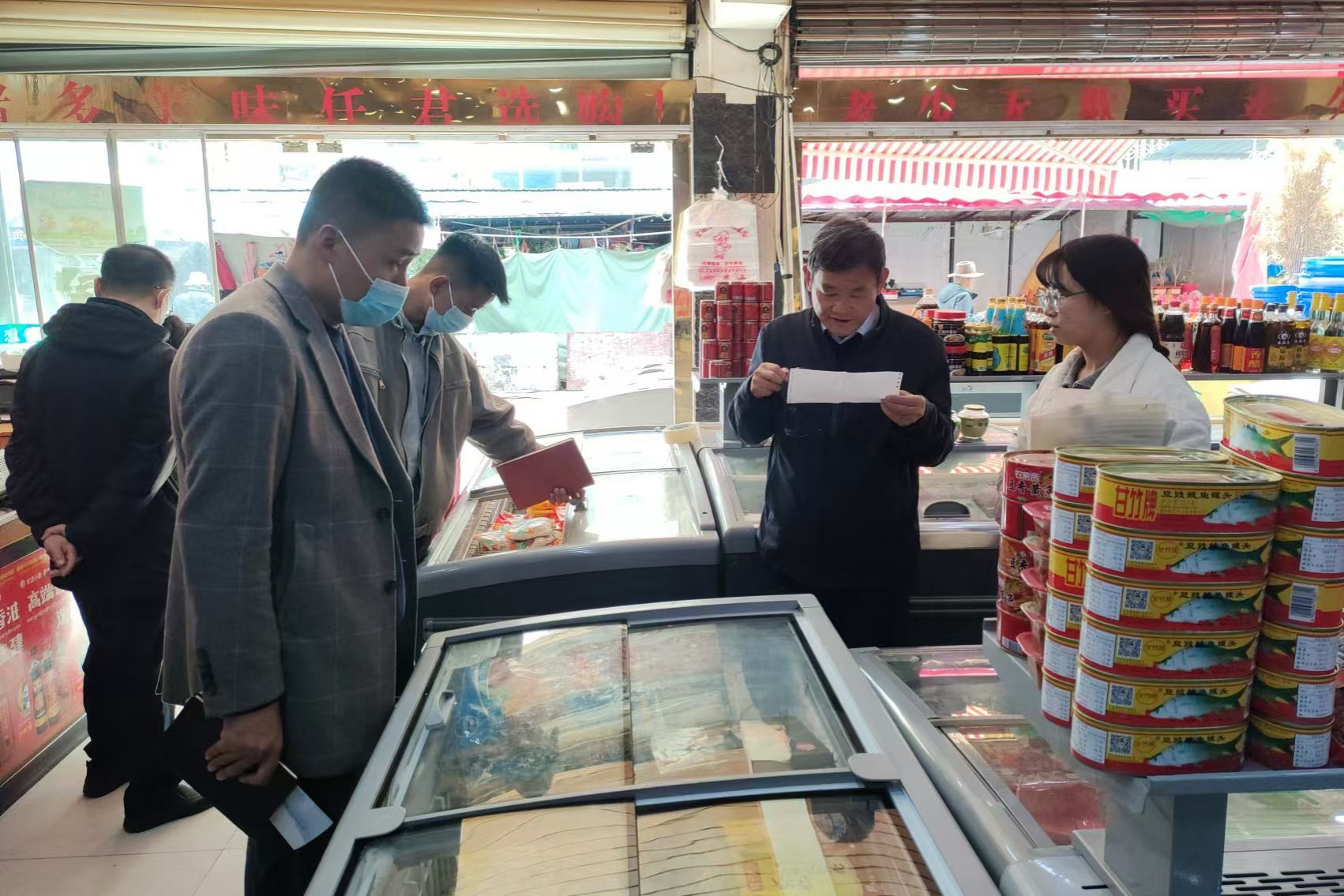 检查组还前往了林芝市主要食材供应市场进行实地检查,对食堂的供货商进行了全面排查,重点检查了供货商的营业执照、食品经营许可证、食品安全管理制度及供货合同等。对供货商的仓储、运输条件进行了现场考察,确保食材在运输过程中不受污染。