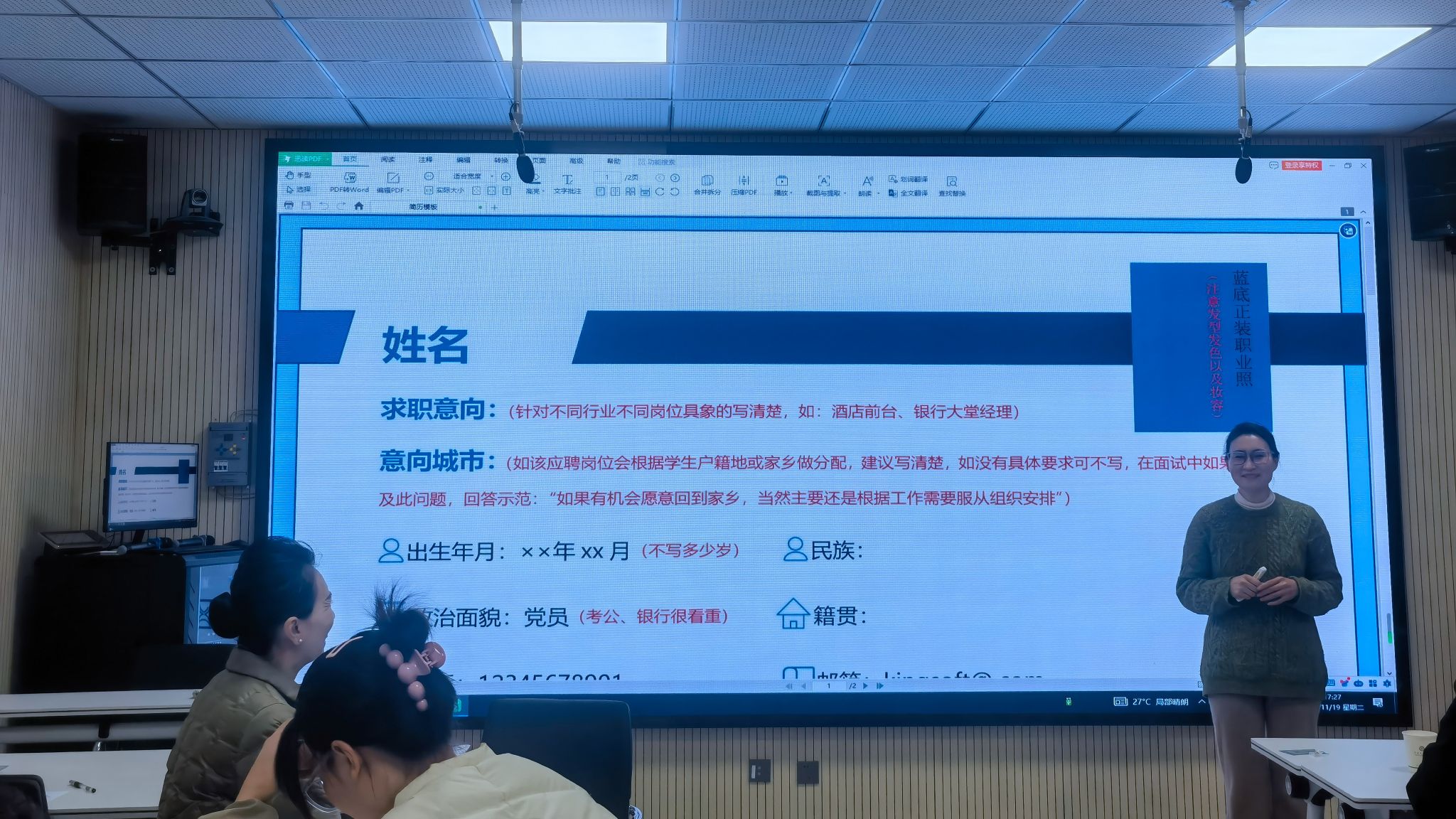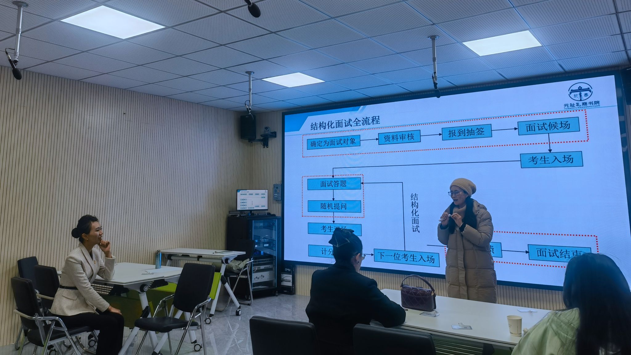 18日上午聚焦职场形象与职业行为塑造,讲师借案例讲解不同场景着装及形象管理,教师分组设计展示方案,还学习职场礼仪等准则并实践。下午围绕面试语言艺术,构建自我介绍框架,模拟沟通场景,讲师即时反馈指导。19日主要进行面试场景还原,上午解析面试流程、问题类型及策略,推荐工具,对比案例后分组模拟,角色互换并即时反馈。下午讲解面试后跟进技巧,课程结尾总结答疑,交付课件材料,介绍线上资源库与交流平台。