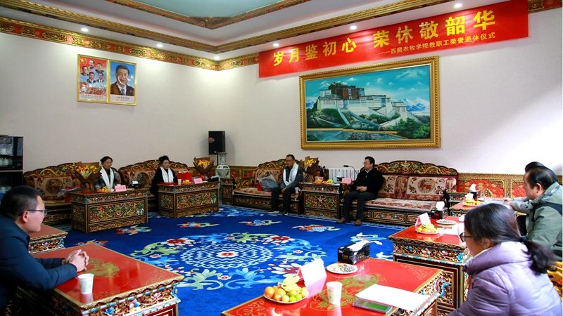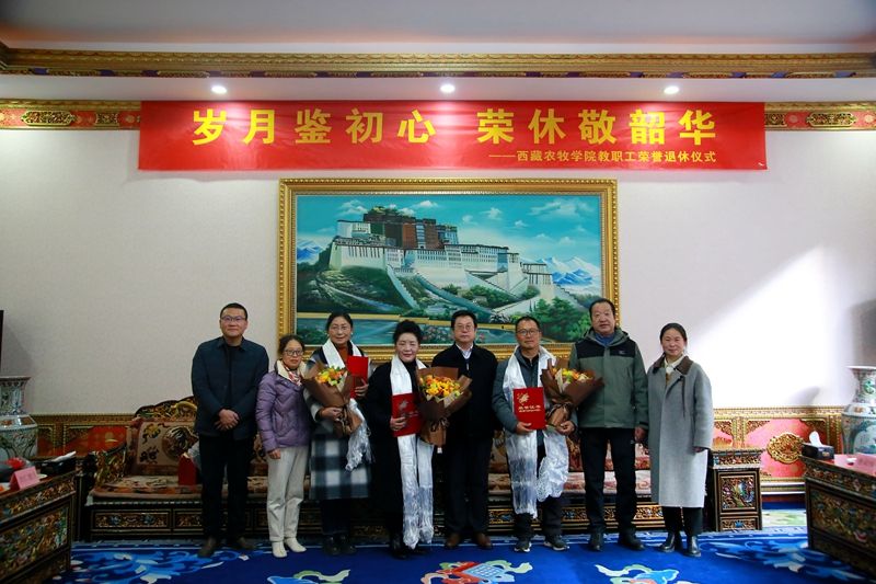 仪式现场气氛温馨,大家欢聚一堂共叙情谊,诚挚感激老同志多年来为学校教育事业发展付出的辛勤汗水和作出的积极贡献。王程为退休人员献哈达,发放光荣退休证书、退休证、纪念品等。退休教职工发言,深情回顾在农牧学院的光辉岁月,分享工作和生活的点点滴滴,真诚感谢学校党委、行政对退休同志的关心关怀,衷心祝愿学校蓬勃发展、越办越好,纷纷表示将继续关心关注学校发展,积极为西藏高等农业教育事业发挥余热、贡献力量。退休教职工所在单位领导对老同志作出的贡献给予了高度评价和充分肯定。