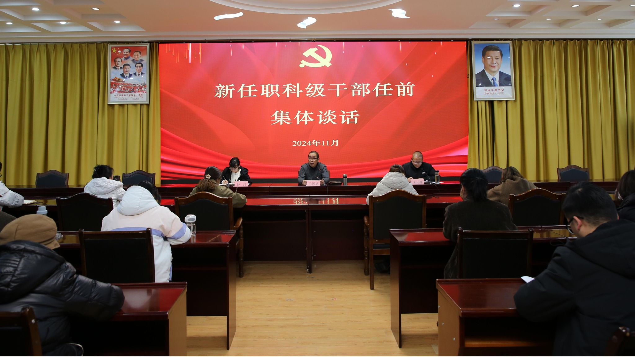 为全面贯彻落实新时代党的组织路线,教育引导新任职科级干部牢固树立正确政绩观,严守纪法规矩,以更加坚定的政治定力和责任担当,推动各项工作高效落实,2024年11月22日,学校召开新任职科级干部集体谈话会。