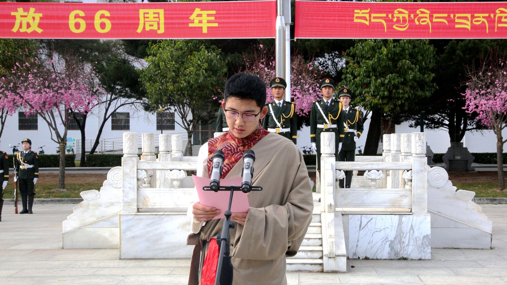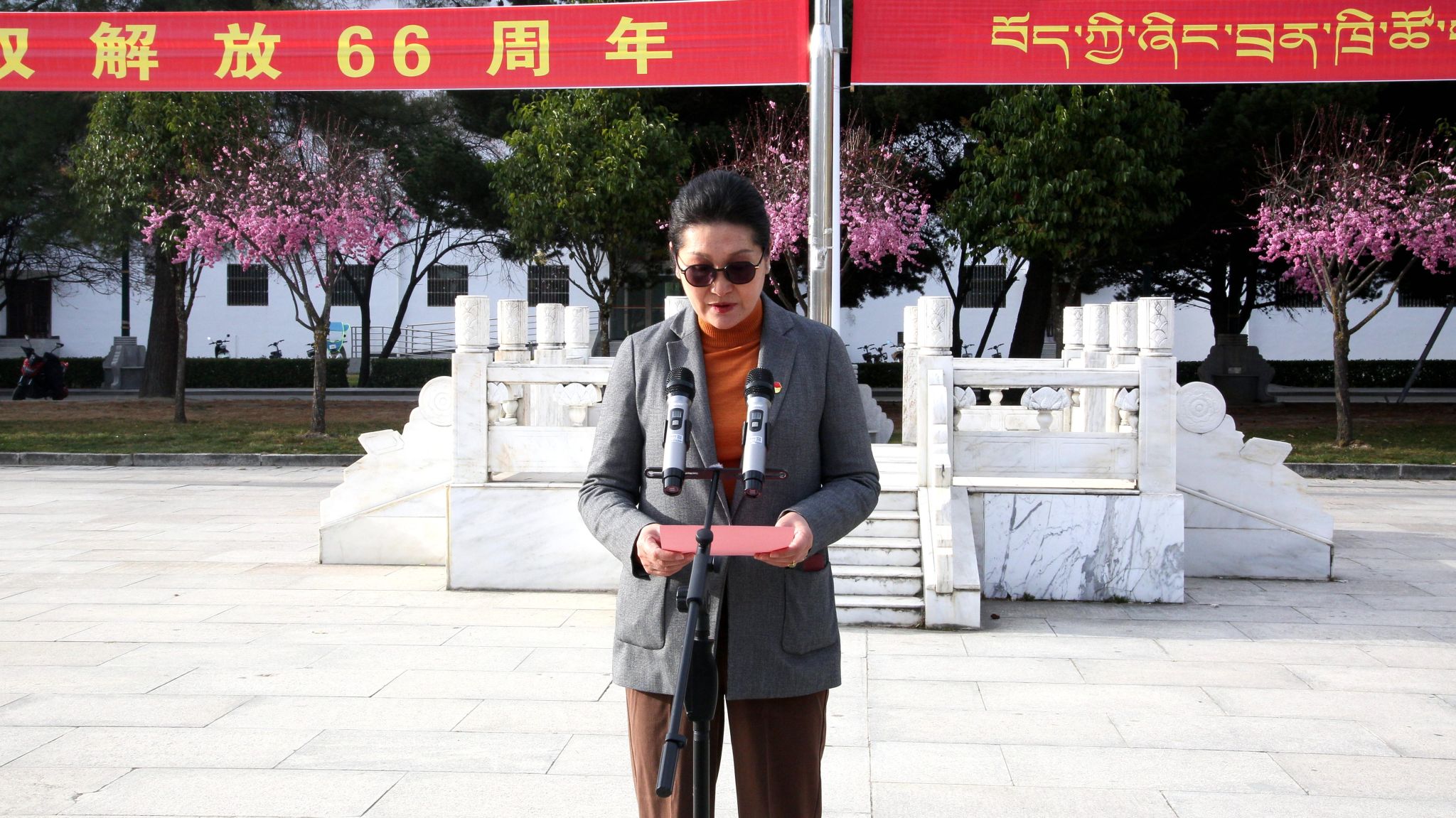 学生代表生态学2022级本科班旦增罗布同学回首往昔,讲述了西藏翻天覆地的变化,表示作为新时代的青年学生,要从历史中汲取智慧和力量,树立远大理想,刻苦学习科学文化知识,为社会主义现代化新西藏建设注入青春力量。