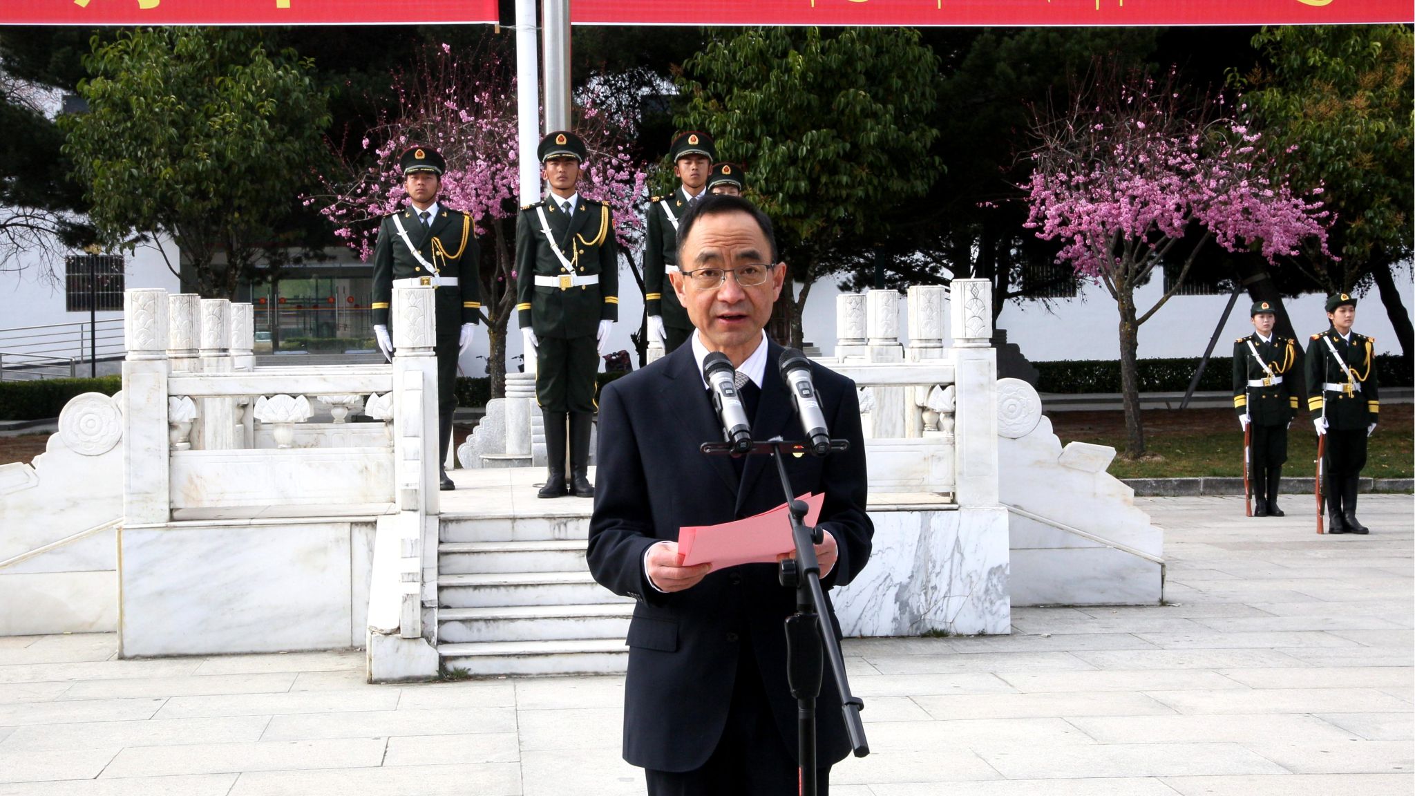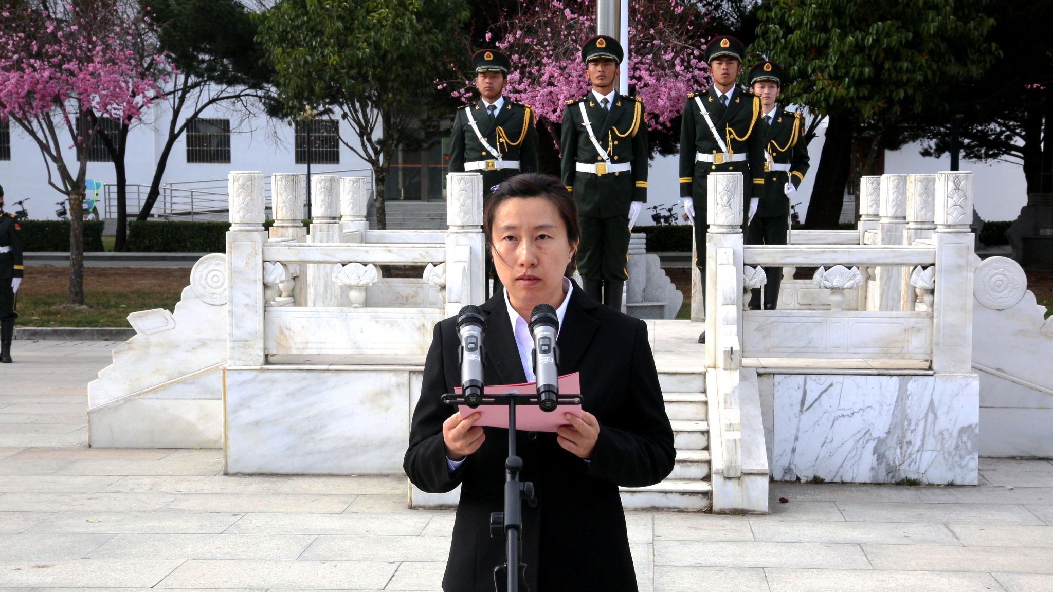 上午9时,国旗护卫队迈着铿锵有力的步伐护卫国旗入场,伴随着雄壮的《义勇军进行曲》,鲜艳的五星红旗冉冉升起,全体师生肃立注目,齐声高唱国歌,表达不忘历史、珍惜现在,感党恩、听党话、永远跟党走的信念与决心。
