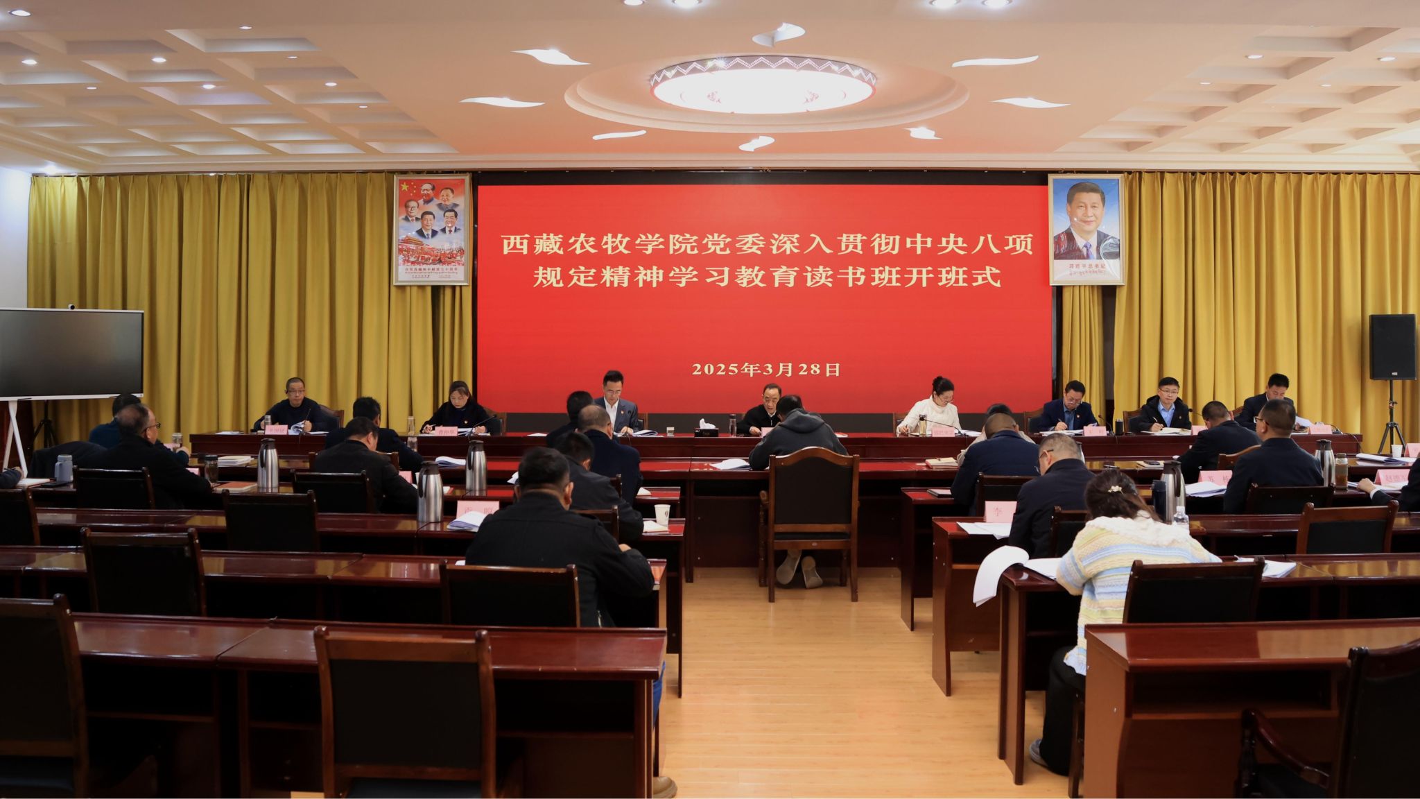2025年3月28日至4月1日,西藏农牧学院党委举办深入贯彻中央八项规定精神学习教育读书班,深学细悟习近平总书记关于加强党的作风建设的重要论述,深入学习中央八项规定及其实施细则精神和区党委实施办法,切实发挥领导干部“头雁效应”,示范带动全校各级党组织和党员干部扎实开展学习教育。