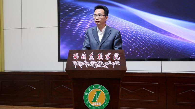 校党委副书记、副校长苏大鹏致辞,他向在场师生介绍本次活动设立的初衷,强调阅读对于师生成长和校园文化建设的重要意义,并提出三点希望:一是坚持阅读,涵养心性。鼓励大家以读书节为契机,多读书、读好书,从书籍中汲取智慧和力量;二是知行合一,学用相长。希望同学们将深耕专业领域形成核心竞争力与跨界拓展认知边界相结合,为乡村振兴与社会发展添砖加瓦;三是共享书香,服务社会。希望广大师生在阅读过程中积极分享自己的感悟,传帮接代、以老带新,激发更多人的阅读兴趣,让阅读的力量辐射到社会。随后,苏大鹏郑重宣布2025年“农情校园 牧浴书香”读书节活动正式开幕,现场响起热烈的掌声。