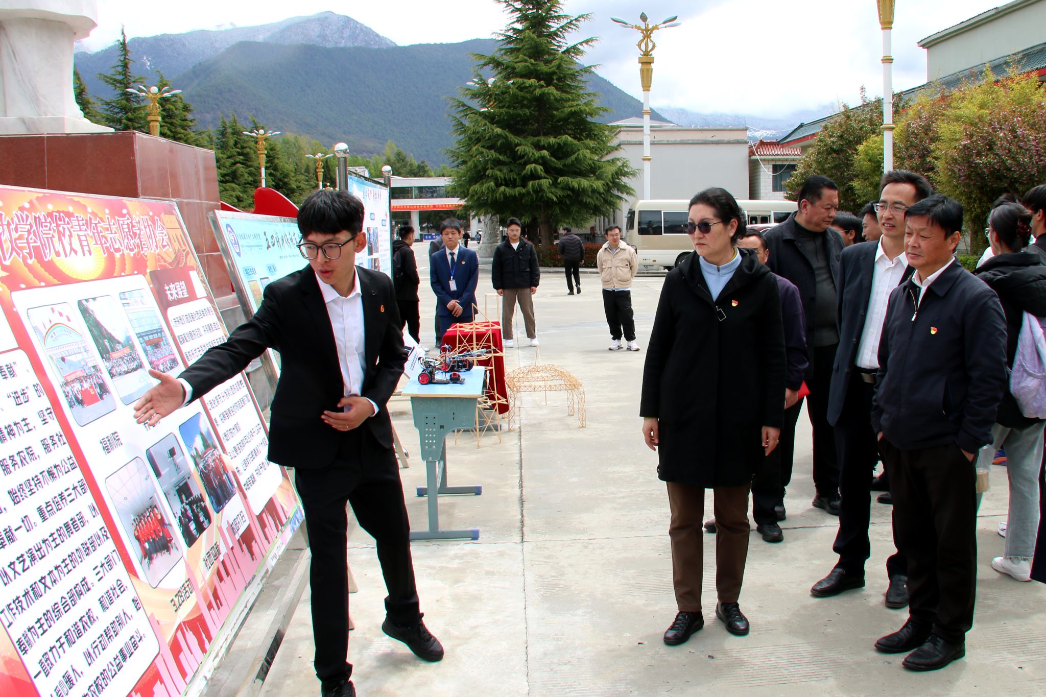 会后,校领导、各县处级单位领导、获奖代表、师生代表一同参观了优秀社团、学生会办实事、“一院一品”展板。
