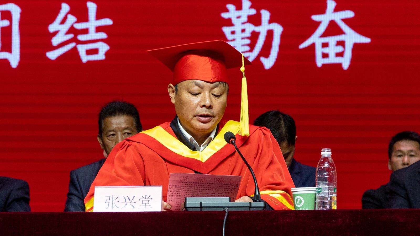 张兴堂为硕士毕业生代表颁发毕业证书并授学位。