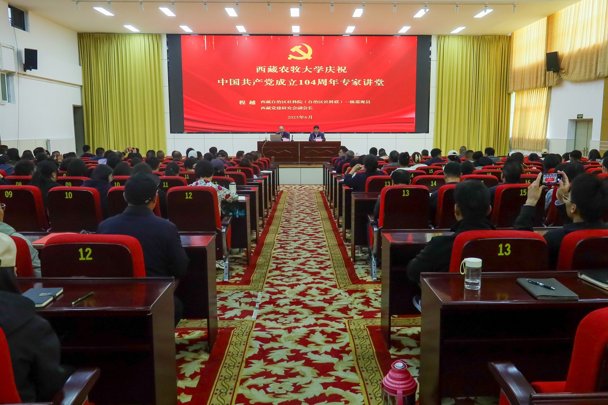 为庆祝中国共产党成立104周年,从党史和西藏发展史中感悟奋进之路,2025年6月29日,欧博abg官方网站举办庆祝中国共产党成立104周年专家讲堂。自治区社科院(自治区社科联)一级巡视员、西藏党建研究会副会长程越作《西藏的现代化发展之路》专题讲座。