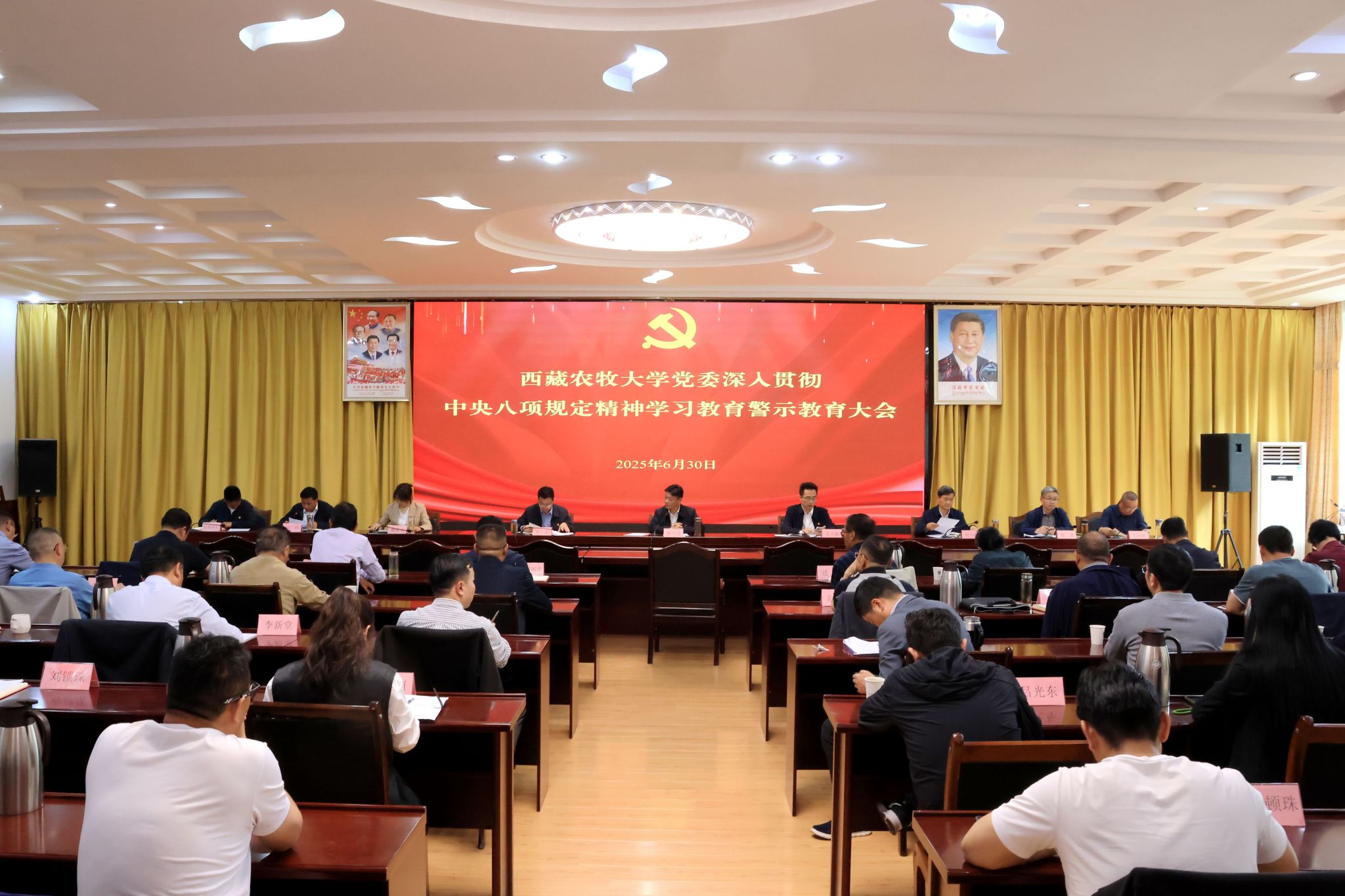 2025年6月30日,欧博abg官方网站党委召开深入贯彻中央八项规定精神学习教育警示教育大会。校党委书记、副校长张兴堂主持会议并讲话。在校党委班子成员、县处级干部参加会议。