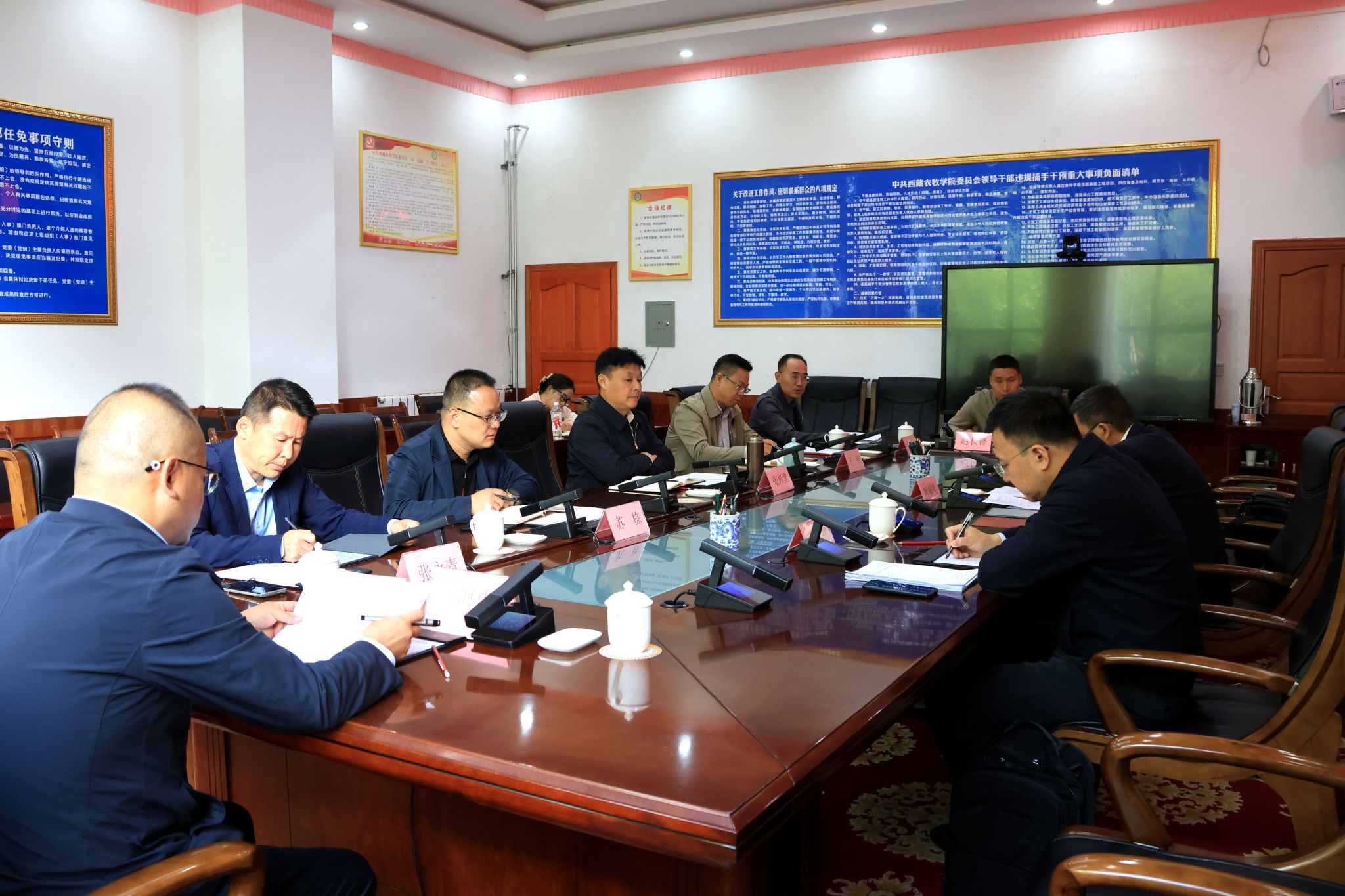 叶根礼指出,新学期开学工作是学校工作的重中之重,务必高度重视,确保各项工作有序推进。强调,要进一步围绕铸牢中华民族共同体意识,加强学生思想政治教育,切实提升学生的国家意识和民族自豪感;要进一步抓实思想教育与队伍建设,加强师德师风建设,筑牢思想根基,提升教师队伍的职业道德素养;要进一步筑牢校园安全防线,定期开展消防隐患排查,落实食品安全管理制度,加强实验设备维护与危险品管理;要进一步推进校园文化建设,开展丰富多样的校园文化活动,营造积极向上、和谐浓厚的校园文化氛围。
