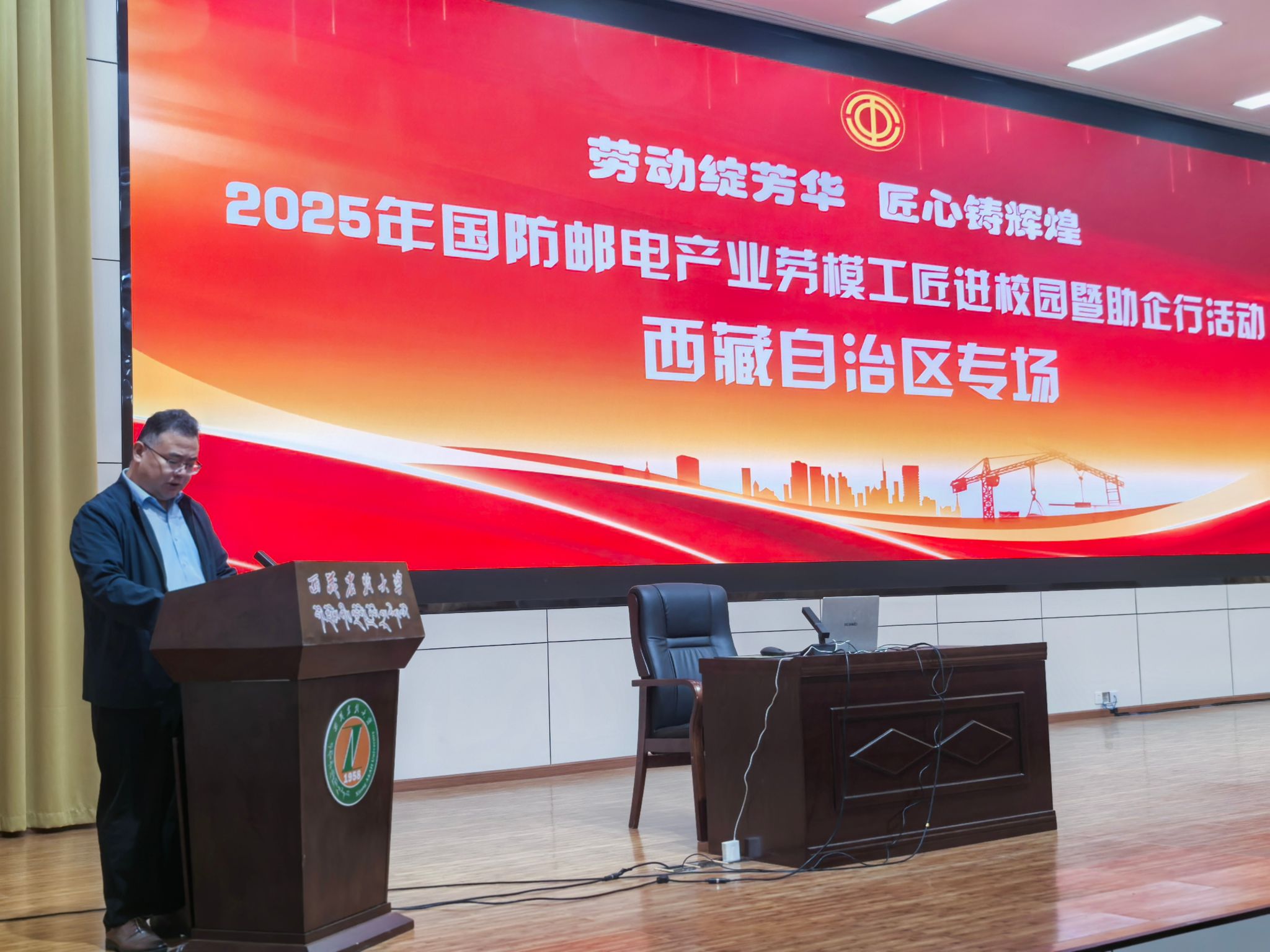 为深入贯彻党的二十大精神,弘扬劳模精神、劳动精神、工匠精神。8月27日上午,“2025年国防邮电产业劳模工匠进校园暨助企行活动西藏自治区专场” 宣讲报告会在欧博abg官方网站行政楼一楼学术报告厅拉开帷幕。出席此次活动的领导有欧博abg官方网站校党委委员、校长助理刘晓丽,中国国防邮电工会分党组成员、副主席王忠,自治区总工会劳动经济和宣教网络部部长张万里、林芝市总工会党组副书记、主席赵敬等出席活动。