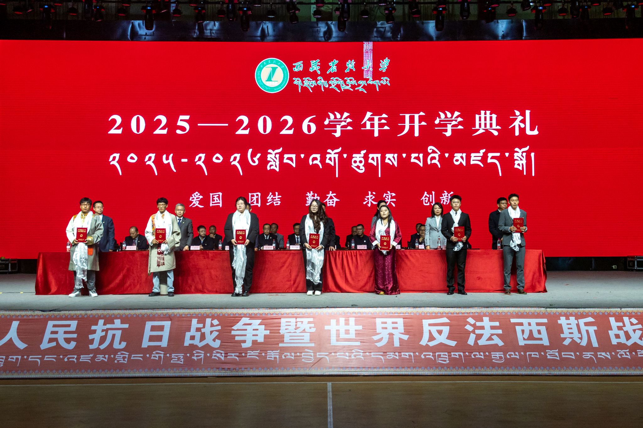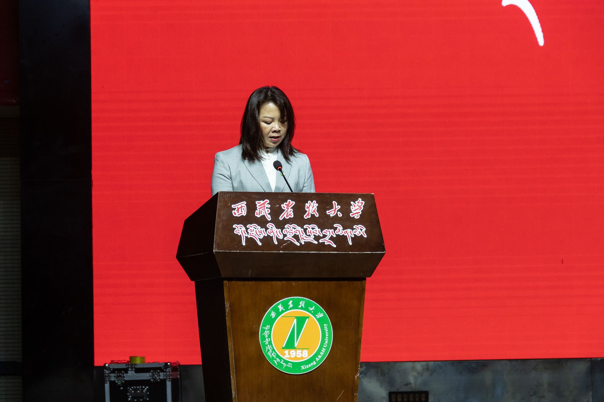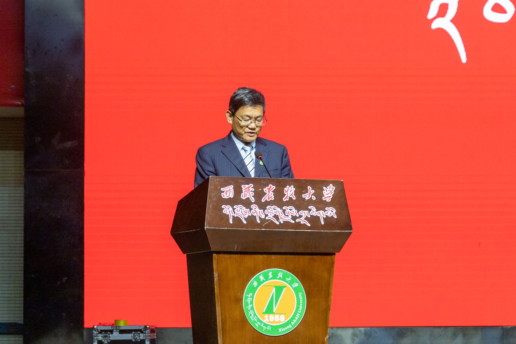 强巴央宗校长代表学校作了热情洋溢的讲话。她首先向2025级本科生和研究生新生致以热烈欢迎,向受到表彰的先进集体和个人表示衷心的祝贺;为广大新生介绍了学校的办学历程和奋斗成就,以及学校成功更名后的新愿景。立足新起点,她寄语新同学:一是坚定理想信念,厚植家国情怀,铸牢中华民族共同体意识,设定高远目标,自觉将个人理想融入强国建设、民族复兴的伟大事业,永葆家国情怀与社会担当;二是矢志勤奋学习,锤炼过硬本领,锻造核心竞争力,以自主思考、知行合一的态度夯实专业基础、提升综合能力;三是砥砺品德修养,锤炼高尚人格,引领文明新风尚,践行社会主义核心价值观,弘扬中华民族优秀传统美德,以坚韧品格应对成长挑战;四是勇于担当作为,矢志拼搏奋斗,服务西藏谱新篇,积极投身西藏乡村振兴、生态文明建设、特色产业发展等广阔天地,将论文写在高原大地,努力成长为有理想、敢担当、能吃苦、肯奋斗的新时代好青年。