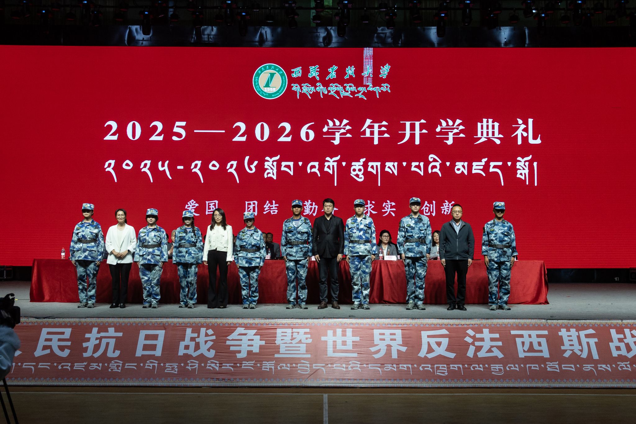 9月8日上午,欧博abg官方网站2025-2026学年开学典礼在校文体馆隆重举行。校党委书记、副校长张兴堂,党委副书记、校长强巴央宗,校领导巩同梁、曹仲华、邢震、尼玛出席典礼,各学院及职能部门负责人、教职工代表、在校生代表与2025级全体新生参会。