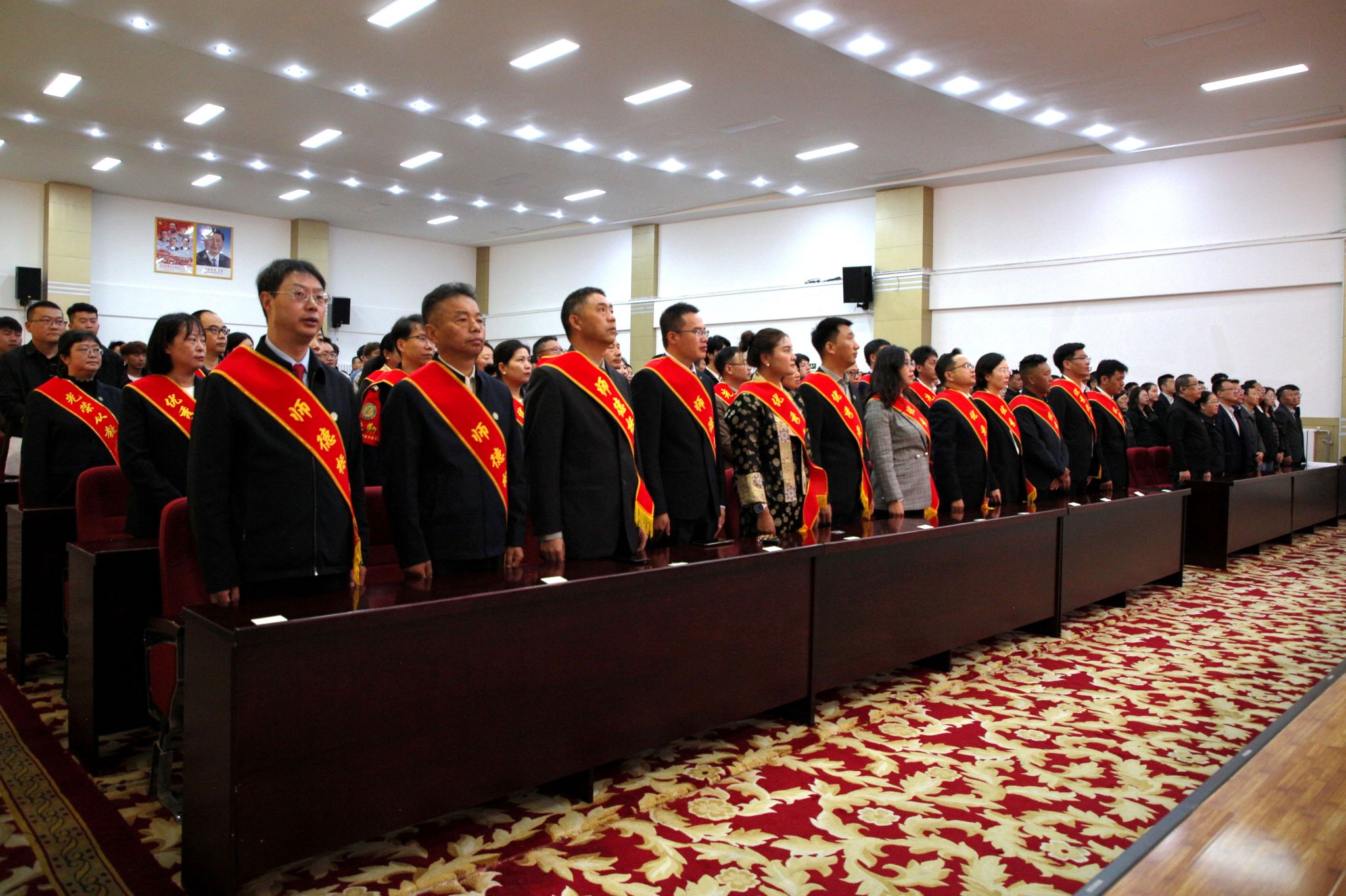 学校领导班子成员巩同梁、曹仲华、尼玛,受表彰人员,教师、学生及离退休干部代表等参加大会。