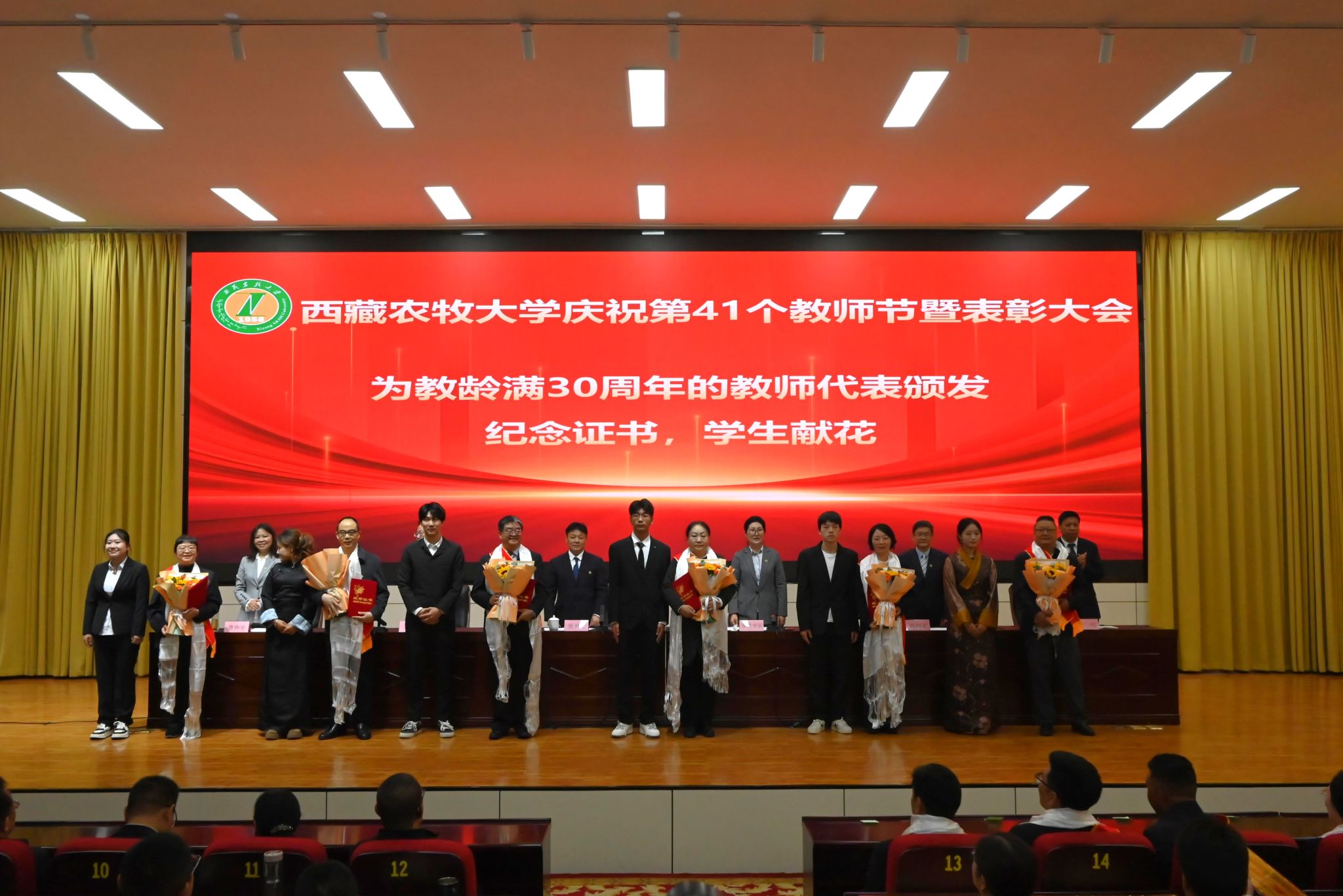 张兴堂代表学校党委、行政向全校教师和教育工作者致以节日问候。他回顾学校取得的发展成就,重点聚焦贯彻落实习近平总书记在全国教育大会上、出席西藏自治区成立60周年活动时的重要讲话以及重要回信精神等,号召全校教职员工举全校之力,埋头苦干,默默奉献,勇担服务国家重大战略和区域经济社会发展需求的重任,做教育家精神的传承者,以坚定初心筑牢育人根基,做教育家精神的践行者,以过硬本领提升育人质量,做教育家精神的弘扬者,以改革创新激活发展动能,奋力建设一所高水平的应用研究型水电农牧科技大学和勇担教育戍边、教育稳藏、教育兴藏职责使命的“国门”大学,为建设社会主义现代化新西藏、实现中华民族伟大复兴作出新的更大贡献。