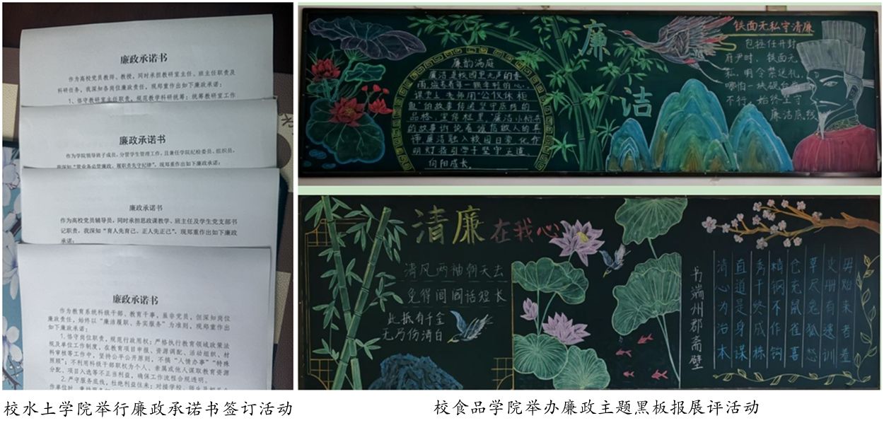 丰富载体,创新形式。教育月活动期间,七大单元活动交织进行,亮点纷呈。围绕强化理论武装,组织开展线上“学廉知廉”知识问答,推动廉洁知识入脑入心;组织教职工学习教师法、职业行为准则等,引导教师陶冶道德情操,坚守育人初心;围绕文化浸润,举办廉政主题演讲比赛,不同岗位上的教职工讲廉述廉,传递廉洁力量;举办“农情金秋、争当好读书人”好书荐读、“书香致远,悦读青春”读书分享活动,推荐廉洁读本、分享阅读体会;开展“思廉倡廉”作品征集活动,师生创作书法、绘画、视频等各类廉政文化作品70件,并进行展览宣传,使廉洁理念可观可感。