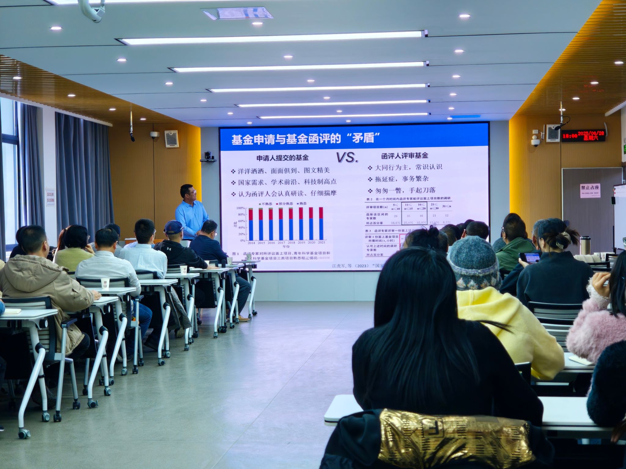 郝露露以“我眼中的国家自然科学基金”为题,对国基金的文化、工作方针、运行机制、资助体系等进行了详细阐述,重点对国基金2025年的重大改革举措进行了说明,建议科技人员在申报过程中把握“依据可靠、规则延续、把握节点、标准统一”的原则,注重细节、规范材料。