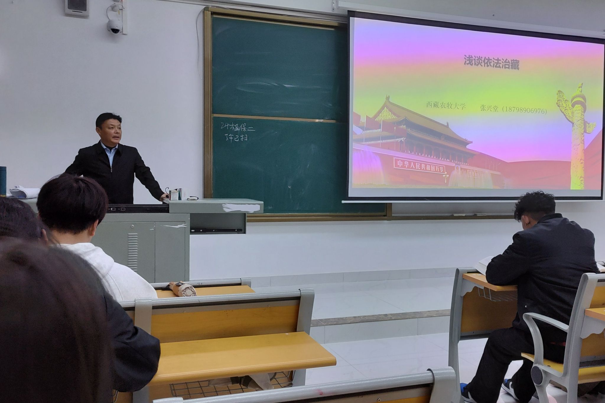 11月11日下午,校党委书记张兴堂教授在学校第二教学楼201教室,随堂为本科班学生作了题为《浅谈依法治藏》的专题报告。