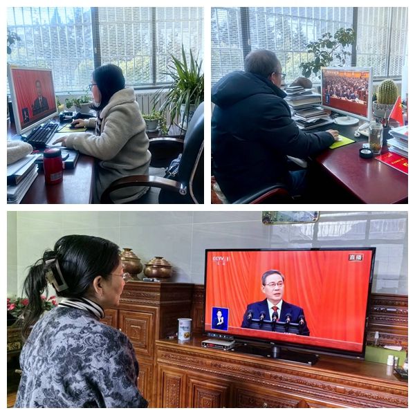 师生们认真聆听了李强总理所作的政府工作报告,报告内涵丰富、主题鲜明、催人奋进,既实事求是总结政府工作取得的成效,深刻分析了面临的困难和挑战,又生动描绘未来发展蓝图,细致部署了各项工作举措,凝聚人心、团结奋进。