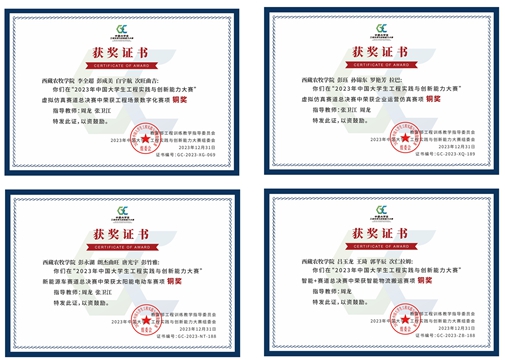 由教育部主办的2023年中国大学生工程实践与创新能力大赛总决赛11月24日首先在西北工业大学拉开帷幕。本次大赛吸引全国200余所高校的一万余名师生参赛。欧博4个队由张卫江老师和周龙老师带队,分别在西北工业大学、山东大学、吉林大学参加国赛,在与全国两千多支国赛队伍的同台竞技中,太阳能电动车、智能物流搬运、工程场景数字化、企业运营仿真4项比赛均获国家铜奖,实现西藏农牧学院获得4项国家级奖项新的突破!