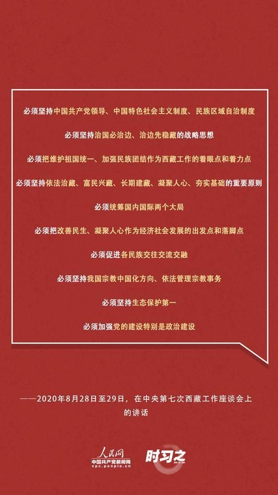 面对西藏工作面临的形势和任务的深刻变化,习近平在中央第七次座谈会上强调:“新时代党的治藏方略是做好西藏工作的根本遵循,必须长期坚持、全面落实。”对此,习近平提出了10个“必须”——