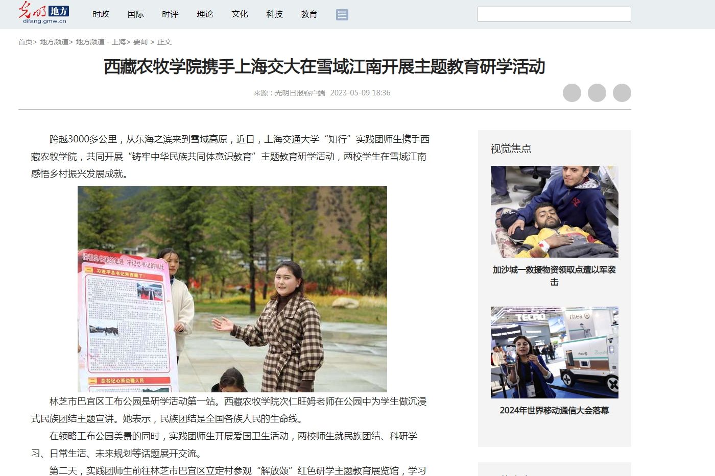 光明日报客户端: 西藏农牧学院携手上海交大在雪域江南开展主题教育研学活动