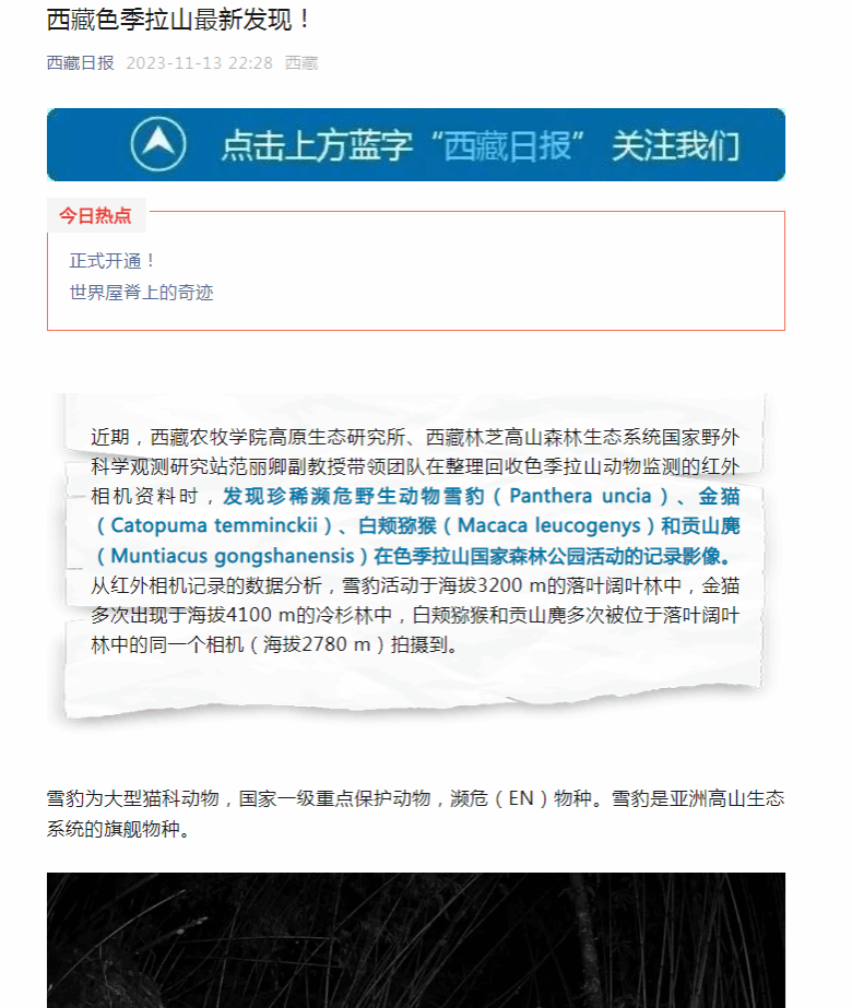西藏日报: 西藏日报: 西藏色季拉山最新发现!