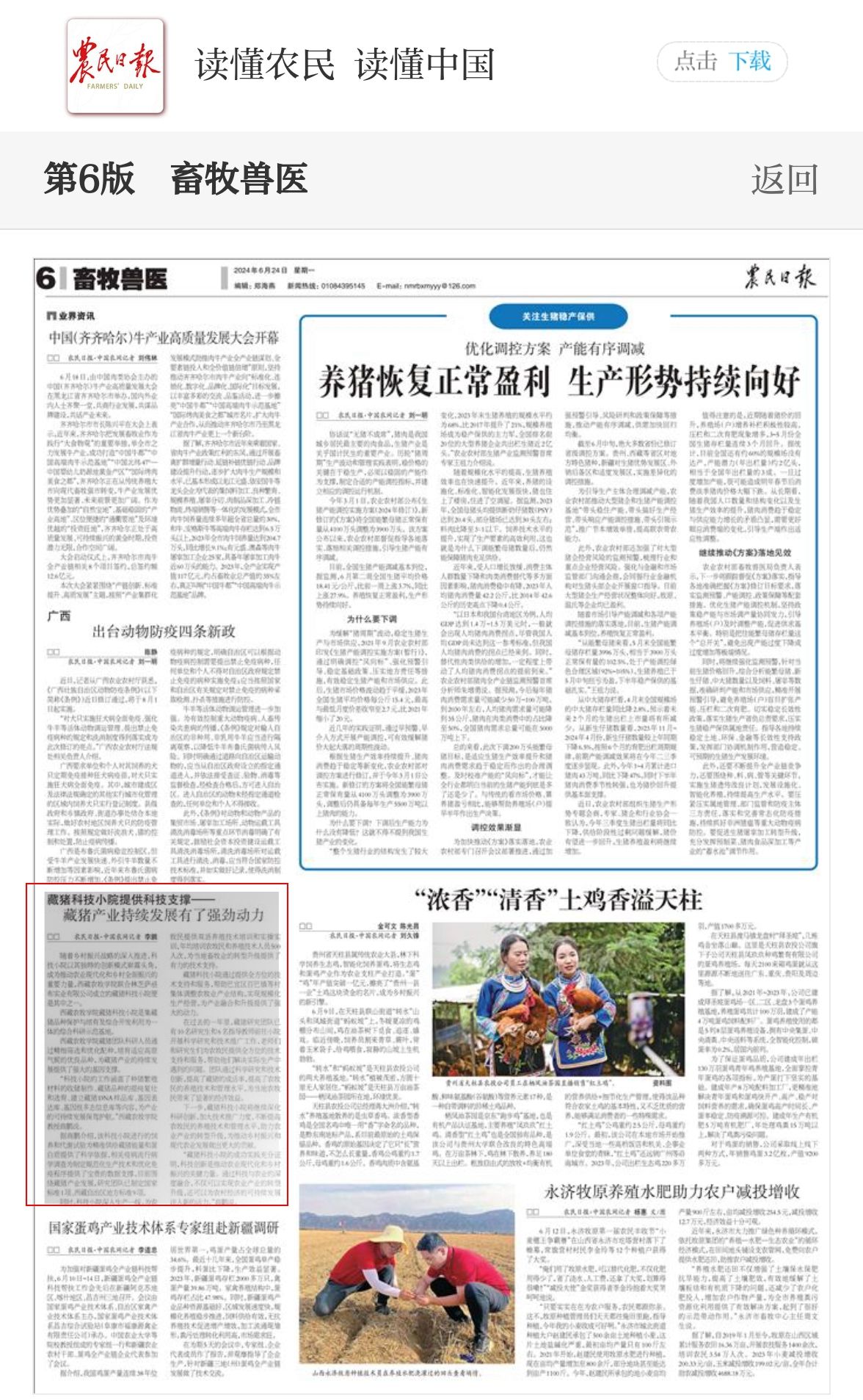 农民日报: 藏猪科技小院提供科技支撑—— 藏猪产业持续发展有了强劲动力