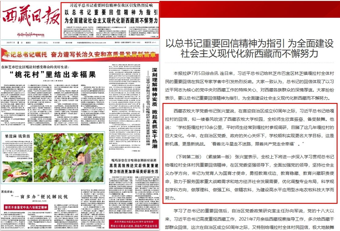 西藏日报客户端: 学校党委书记张兴堂就如何贯彻落实习近平总书记重要回信精神 接受...