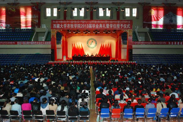 2013年6月6日下午,我院在文体馆隆重举行2013届毕业典礼暨学位授予仪式,学院党政领导及1600余名师生员工参加毕业典礼。毕业典礼由院党委书记、副院长纪建洲主持。院党委副书记、院长次旦平措发表讲话。 典礼...