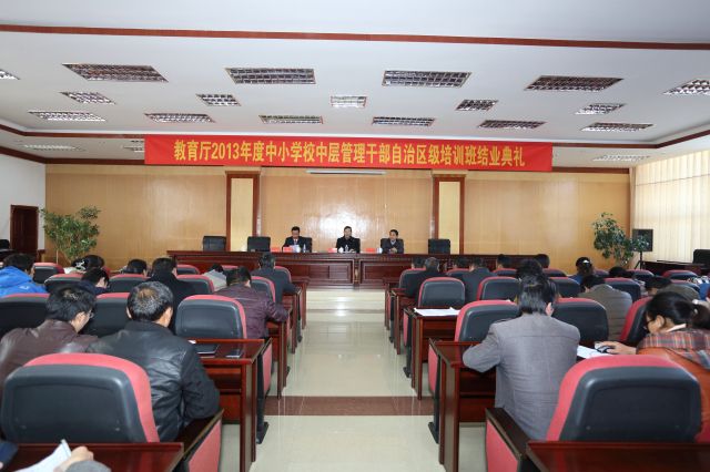 2013年10月27日,由我院承办的全区2013年度中小学校中层管理干部自治区级培训班结业典礼隆重举行。学院党委委员、副院长赵垦田出席结业典礼并讲话,教务处、成人教育部等单位负责同志及培训学员60余人参加了结业...