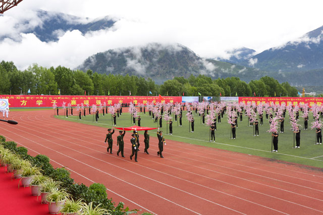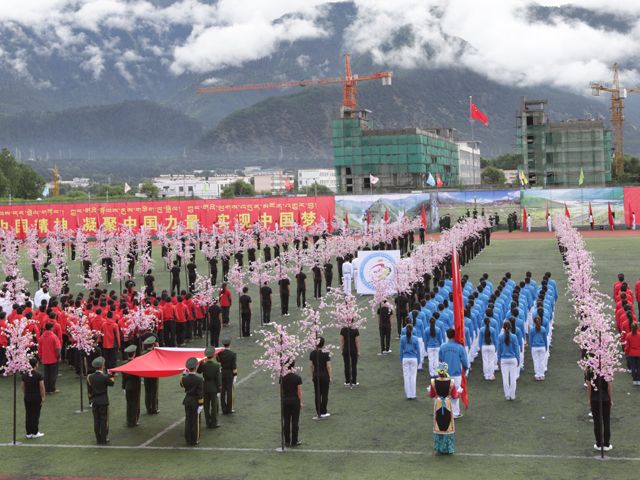 国旗队入场(以桃花方阵为主题) 会徽队入场 红旗队入场 裁判员方队入场 .西藏大学代表队入场 西藏民族学院代表队入场 西藏藏医学院代表队入场 ...
