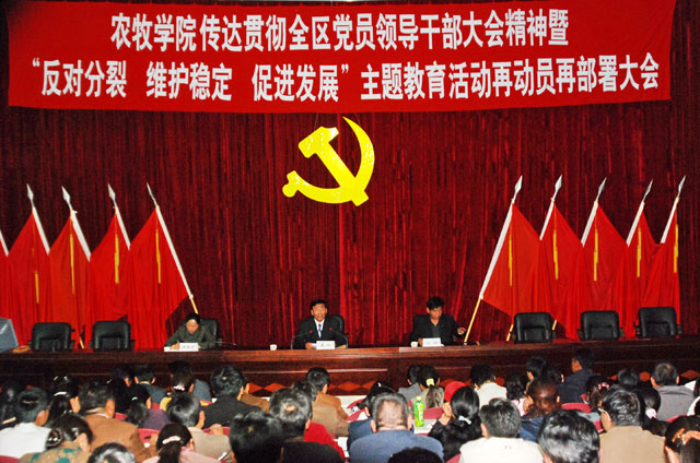 6月17日晚,我院召开传达贯彻全区党员领导干部大会精神暨“反对分裂、维护稳定、促进发展”主题教育活动再动员再部署大会。全院党员参加了会议。 院党委书记、副院长桑珠传达了全区党员领导干部大会精神,并就进...