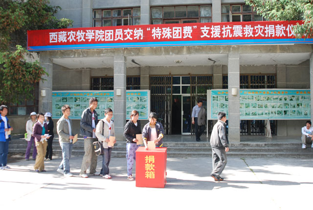6月12日下午,我院组织全院团员青年开展交纳“特殊团费”,共向四川汶川地震灾区捐款14198.7元。 全院团员青年交纳“特殊团费”现场