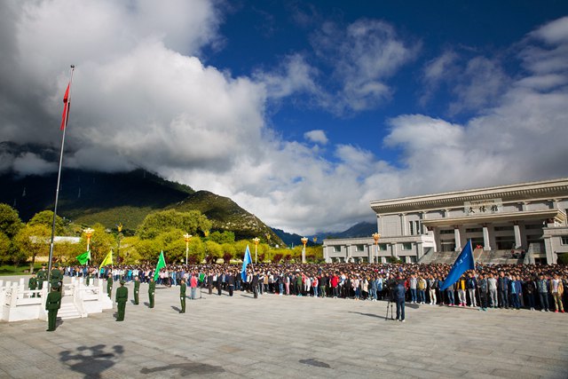 2016年10月1日, 我院隆重举行了国庆节升国旗唱国歌仪式,全体师生员工齐聚文体馆广场,共同庆祝祖国母亲67岁生日,祝福我们的祖国永远繁荣昌盛,祝福社会主义新西藏更加和谐美丽。副院长郑维列主持升国旗唱国歌仪...