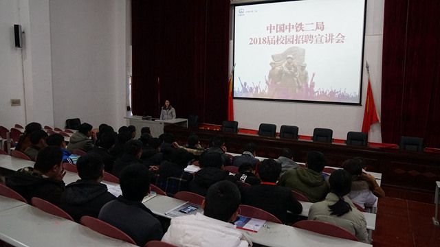 为全力促进我院2018届毕业生多渠道就业,进一步转变毕业生就业观念,加强就业市场供需衔接和精准帮扶,在招生就业处及水利土木工程学院的共同组织下,我院于12月11日下午在2号教学楼学术报告厅举办了中铁二局集团...