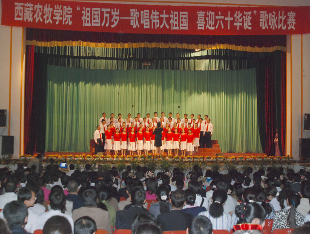 ——西藏农牧学院举行大型歌咏演唱活动 为认真贯彻落实党中央、区党委关于围绕庆祝新中国成立60周年,深入开展爱国主义教育的决策部署,进一步推进“我爱我的祖国”主题教育活动扎实开展,对广大师生进行广...