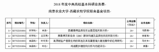 为进一步落实南京农业大学和西藏农牧学院双方战略合作协议,加强两校间科研合作与交流,构建青年教师的交流发展渠道,近期,在两校科研部门和援藏干部的共同努力下,南京农业大学-西藏农牧学院联合基金项目正式设...