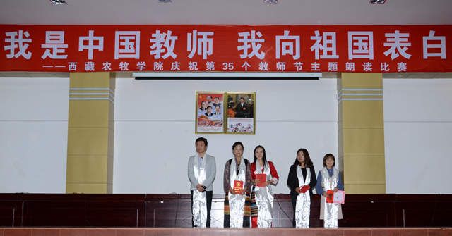 在喜迎中华人民共和国成立70周年、第35个教师节到来之际,西藏农牧学院师生员工欢聚一堂,以“我是中国教师,我向祖国表白”为主题,以朗读爱国经典作品的形式向伟大祖国70周年献礼。院党委书记、副院长云丹加措...