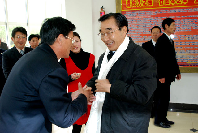 2010年4月10日上午,自治区党委书记张庆黎同志在自治区党委常委、秘书长公保扎西等领导同志的陪同下,冒雨前来我院视察工作。 张庆黎书记在学院党委书记桑珠同志及党政领导班子其它成员陪同下参观了校史展室和...
