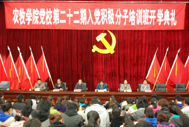 2010年6月1日晚,我院在学术报告厅举行党校第二十二期入党积极分子培训班开班典礼。开班典礼由院人事处副处长达娃次仁主持,院党委委员、副院长周秀英,各二级学院党总支书记、副书记、学生党支部书记及219名学员...