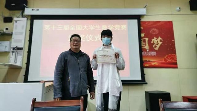 西藏农牧学院8名学生在第十三届全国大学生数学竞赛赛区赛获得优异成绩。5月13日上午公共教学部数学教研室教师敬久旺、洛桑和刘秀丽在公共教学部会议室为获奖学生举办了颁奖仪式。 西藏农牧学院共有34名学...