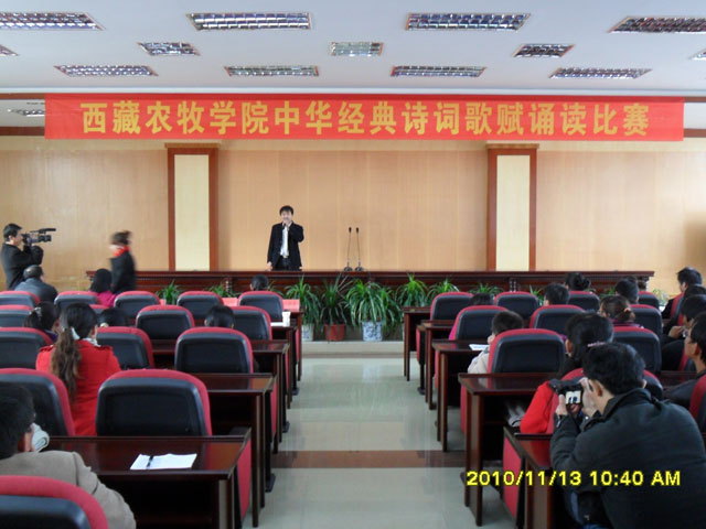2010年11月13日上午,院成人教育培训楼会议室里,观众们聚精会神、全神贯注地倾听着一首首优美的中华经典名作,沉浸在选手深情的朗诵和优美的旋律中,西藏农牧学院中华经典诵读教工组和学生组比赛正在这里紧张进...